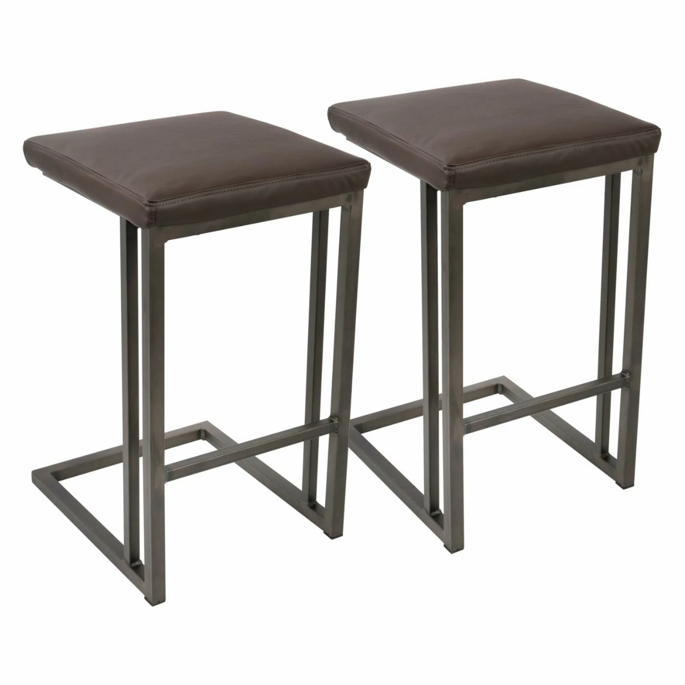 Furnish your contemporary counter area with the LumiSource Roman 25.75 in. Industrial Counter Stools – Set of 2. These stools are supported by metal frames. The seats are padded with foam for comfort and covered with polyurethane leather. A backless design allows this set to be stored underneath your counter or bar for extra space. Choose from availalbe color options.