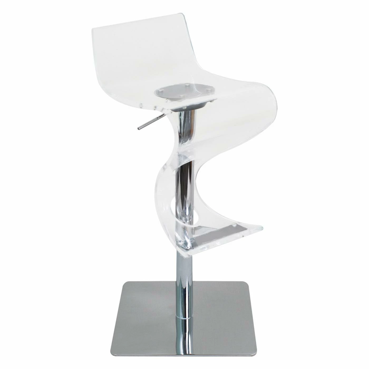 Add a funky accent to your home bar or kitchen with the LumiSource Vista Acrylic Clear Bar Stool. With an elegant ribbon design, this barstool features a chrome-polished base, pole, and accents. The high-gloss frame supports a clear acrylic seat, which makes the chair lightweight and easy to maintain. For durability, the frame is constructed of metal. A hydraulic lift allows you to adjust the stool’s height to best fit your bar. Please note: This item is not intended for commercial use. Warranty applies to residential use only.