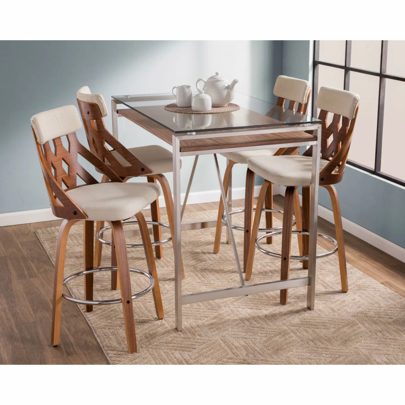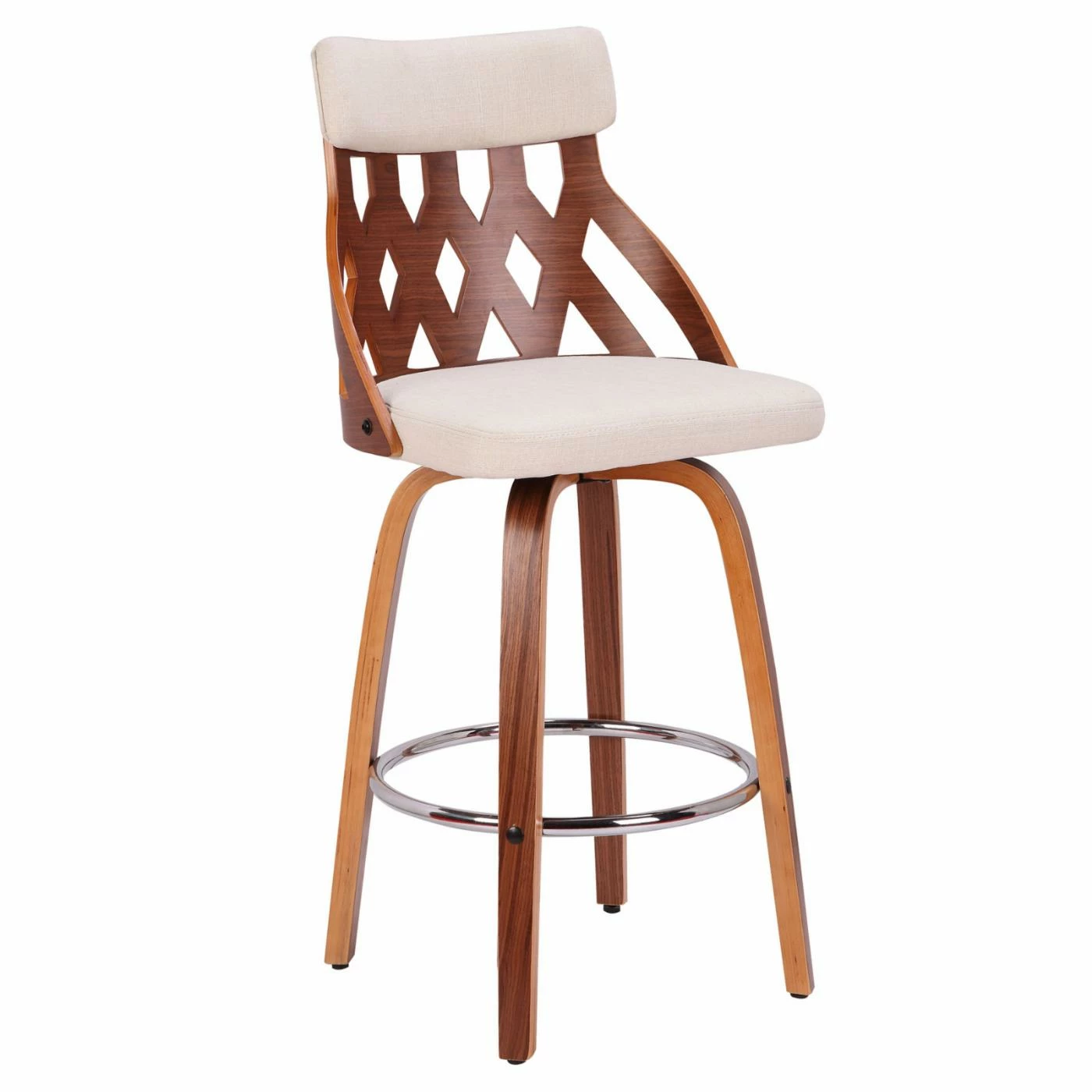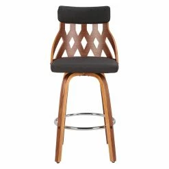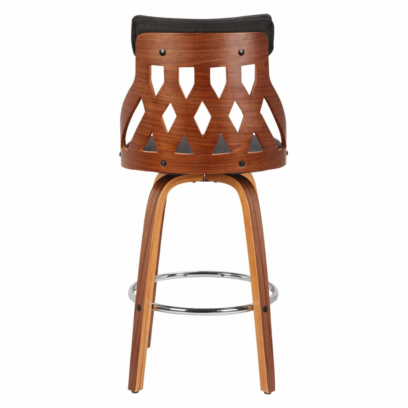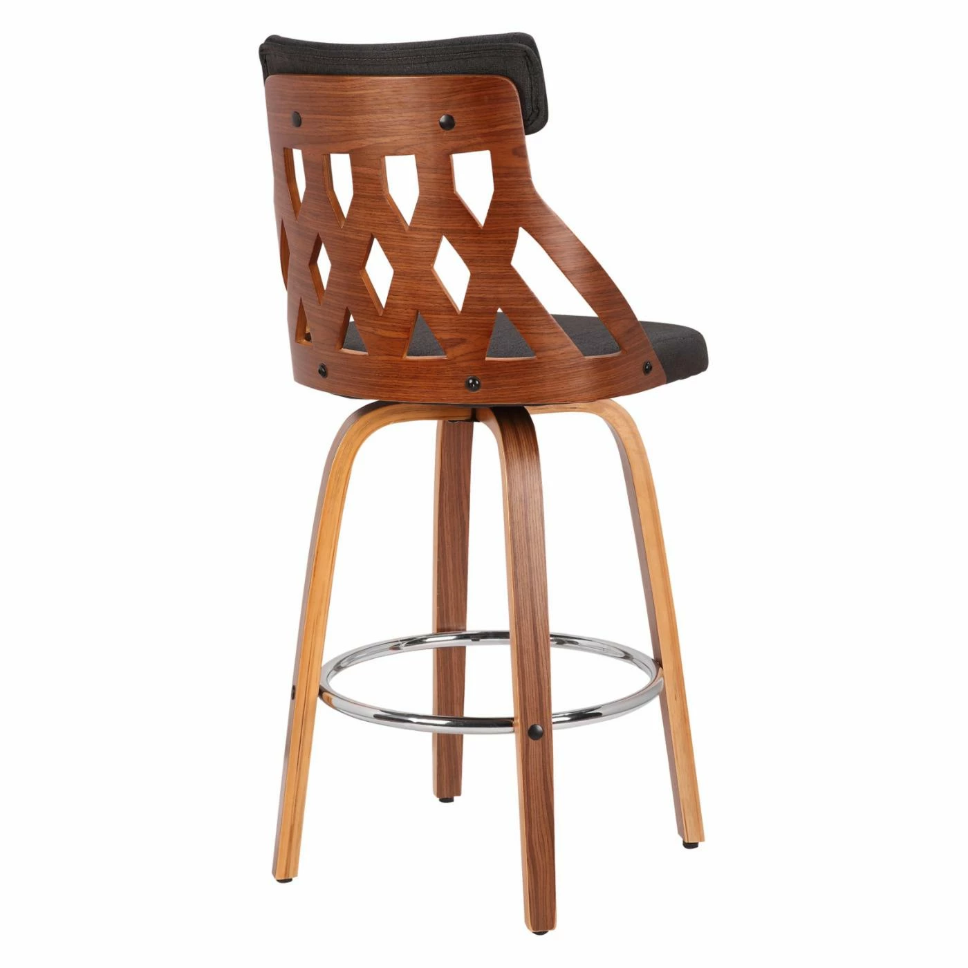 Add a note of distinctive mid-century styling to your home with the LumiSource York 26 in. Counter Stool. Tapered walnut wood legs support the uniquely designed seat featuring a charming lattice backrest. Select from available colors of upholstery to best coordinate with your distinctive taste. The armless design and 360-degree swivel capability makes this a perfect choice for almost any room.