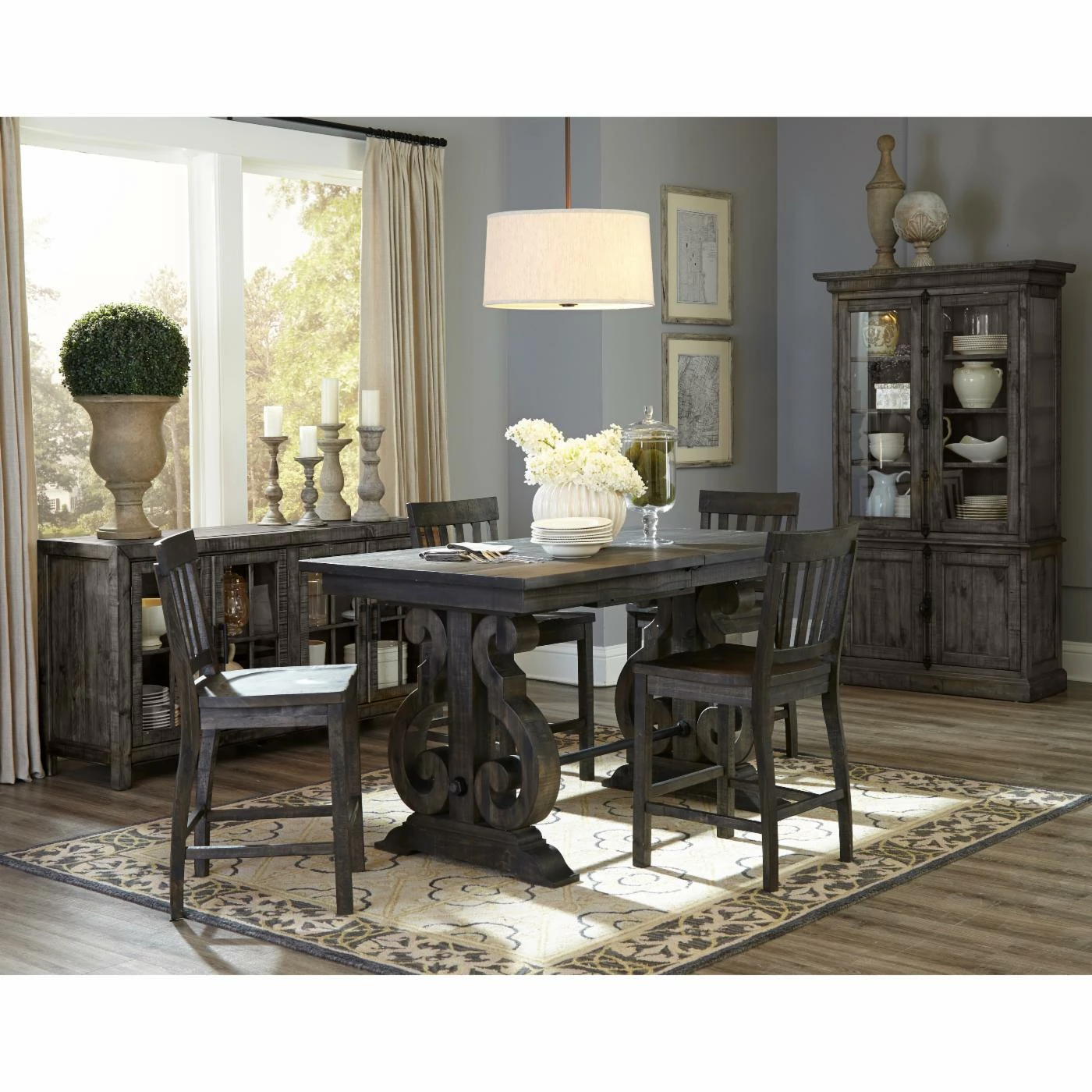 Comfortable, durable, and stylish, the Magnussen Bellamy Counter Stool – Set of 2 makes a smart seating solution for any space. The simple design of each stool is enhanced with a slat backrest. Made from pine solids and hardwood veneers with a versatile gray weathered pine finish, these stools pair perfectly with the Bellamy Collection and most dining tables.