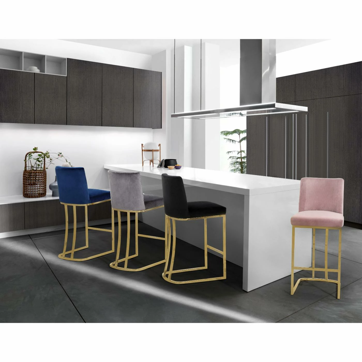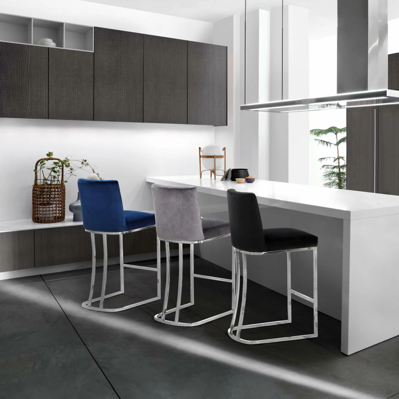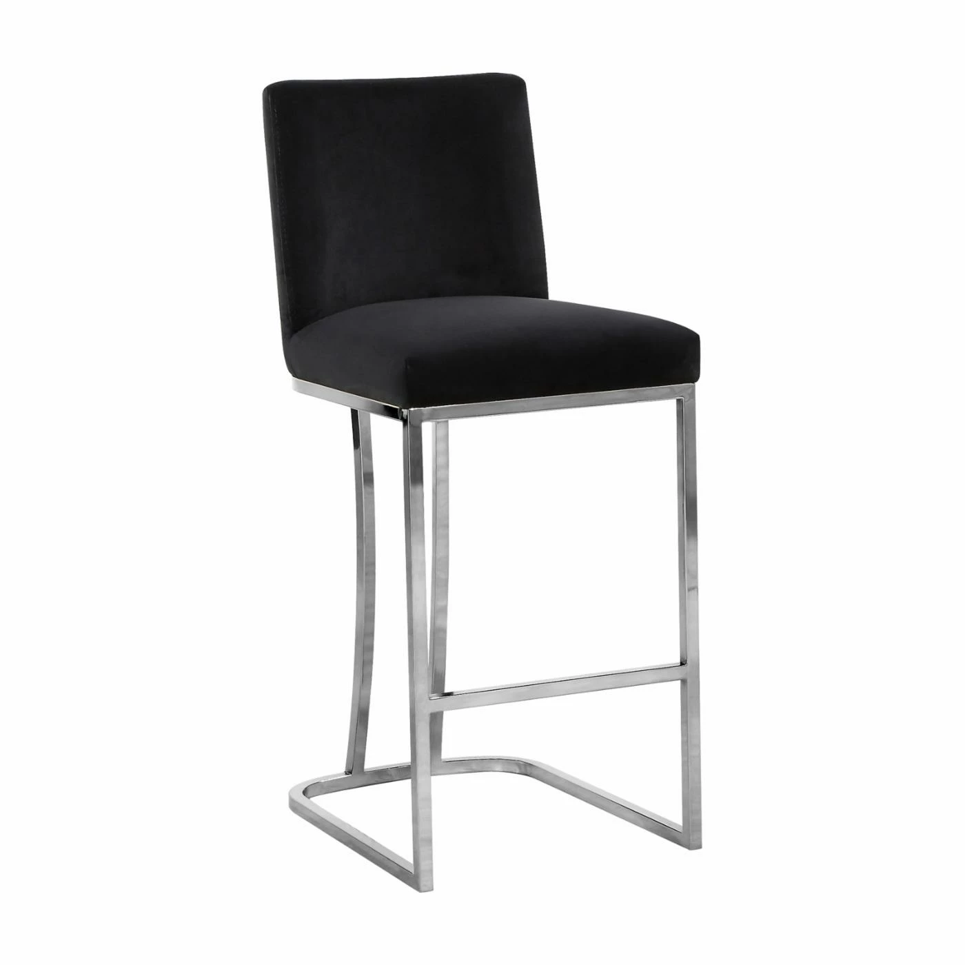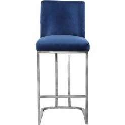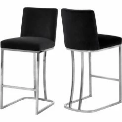 Velvet upholstery makes the Meridian Furniture Inc Heidi 26 in. Upholstered Counter Stool a luxurious seating option for your tall dining table or breakfast counter. The stool sits on a sleek stainless steel frame with curved back detailing and a footrest bar. To ensure it coordinates with your decor, the stool is offered in a choice of available colors.