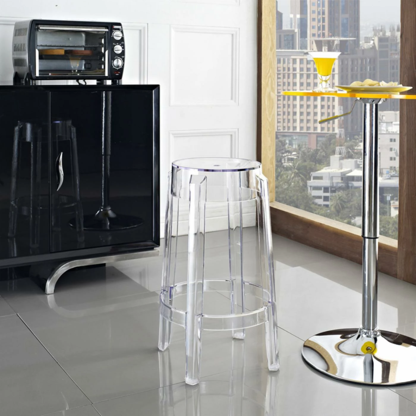 The sleek, modern style of the Modway Casper Acrylic Counter Stool – Clear floats above other counter stools, elevating the design of your home with unexpected beauty. The transparent polycarbonate design is ultra-durable, certain to provide lasting elegance. The stable, non-marking feet and fully assembled construction create perfect finishing touches. Choose from available colors.