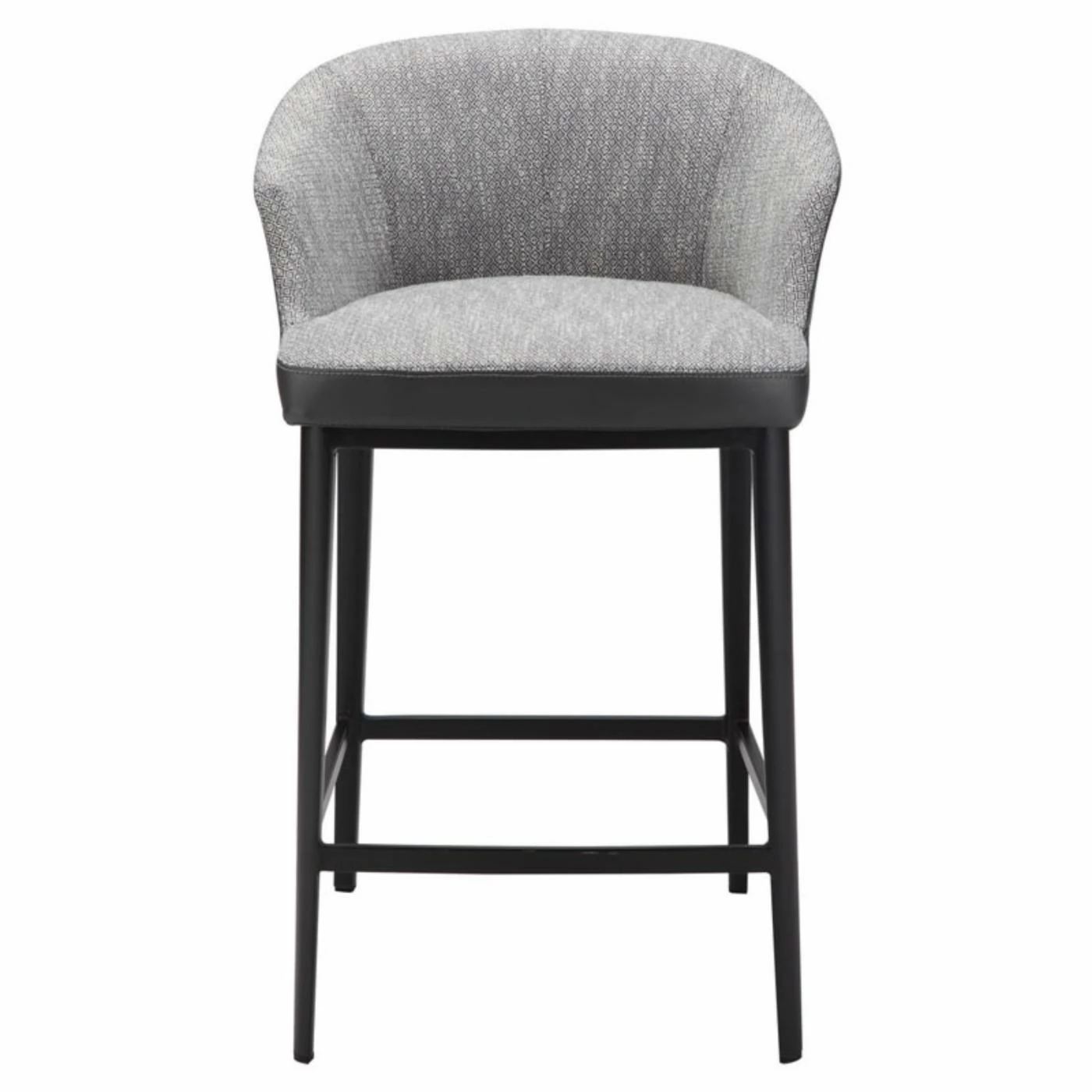 Create a modern look for your dining area with the Moes Home Collection Beckett Counter Stool. This counter stool features a slim profile with a curved back and sloped armrests. Its polyester upholstery is filled with injection foam padding for ample comfort, and its sturdy steel frame has braced legs for use as a footrest. It is offered in a choice of available colors and makes a stylish addition to the bar or breakfast nook.