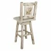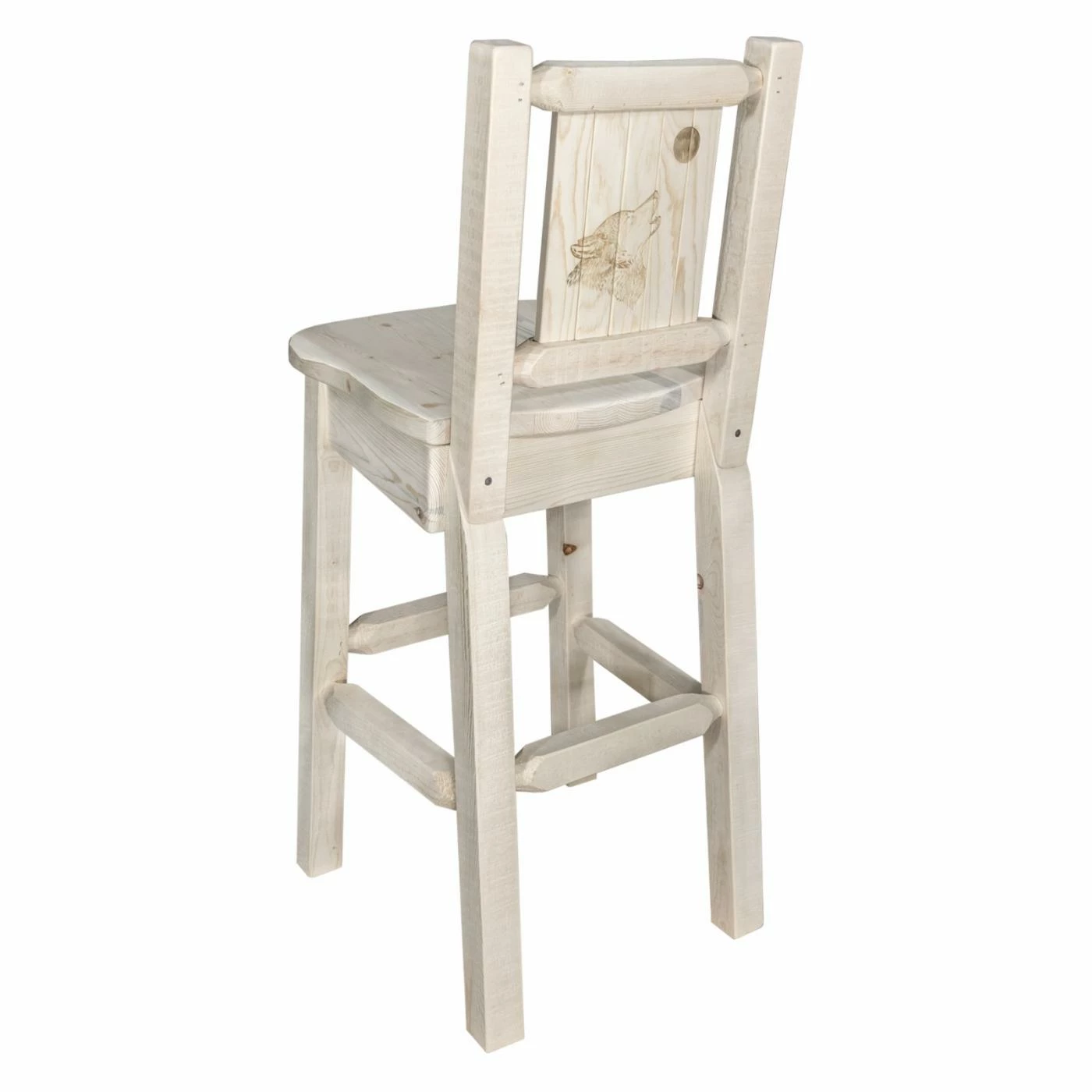 Bring the beauty of rustic style to your home with the Montana Woodworks Homestead 24 in. Engraved Counter Stool. Boasting a rugged, natural design, this stool is crafted from genuine lodge pole pine thatβs been skip-peeled by hand using old-fashioned draw-knives. The legs, back, and cross supports are square sawn to give you a look reminiscent of homes found on the American frontier. As comfortable as it is stylish, this stool has an ergonomic seat so you can linger over drinks and appetizers without getting sore. Select from available finishes to find the perfect look for your home.