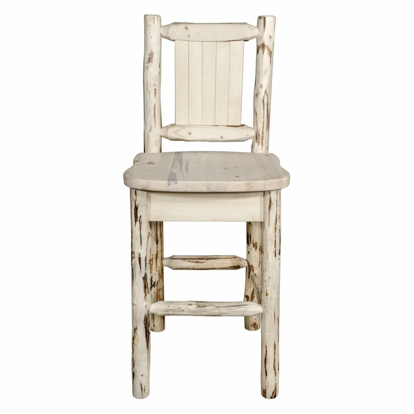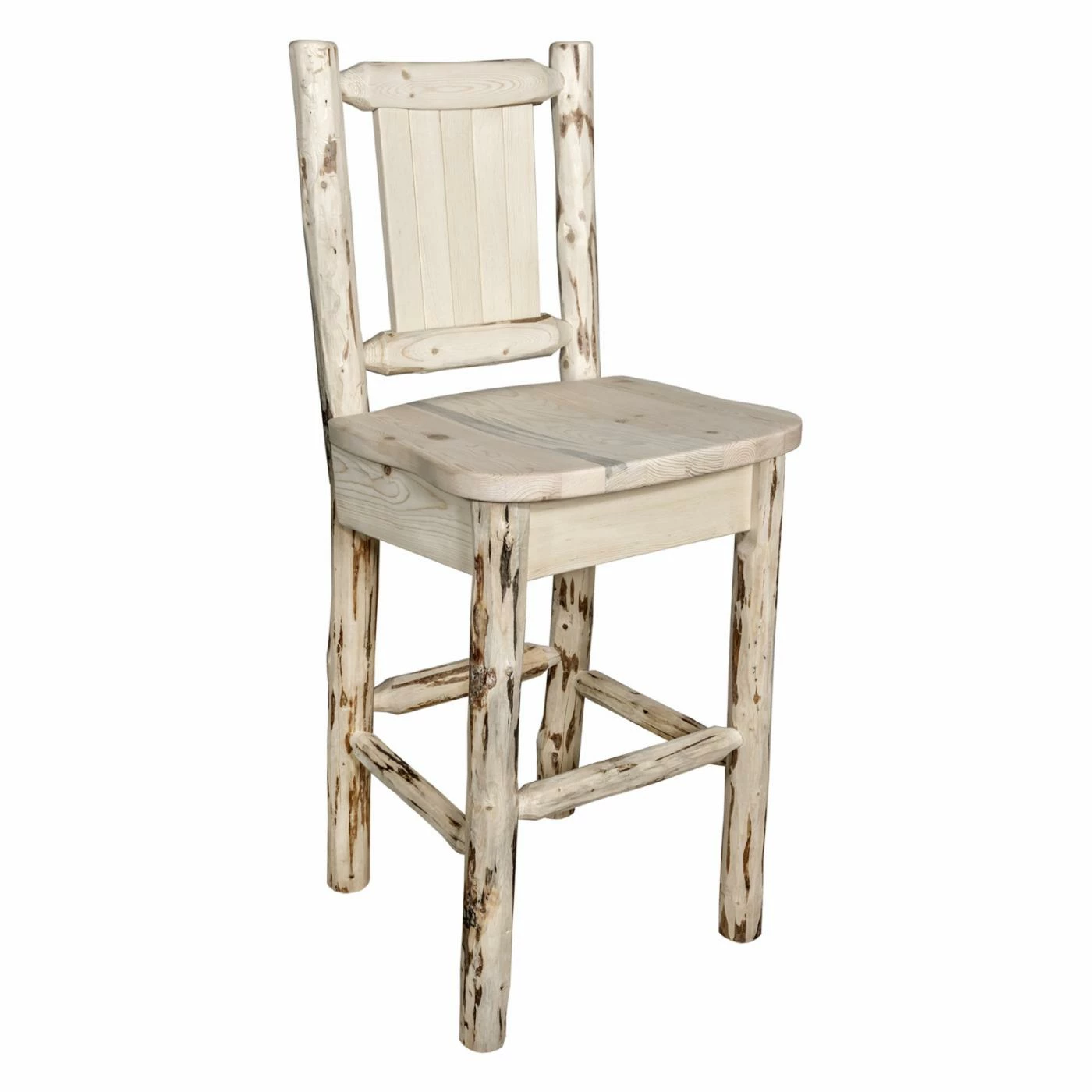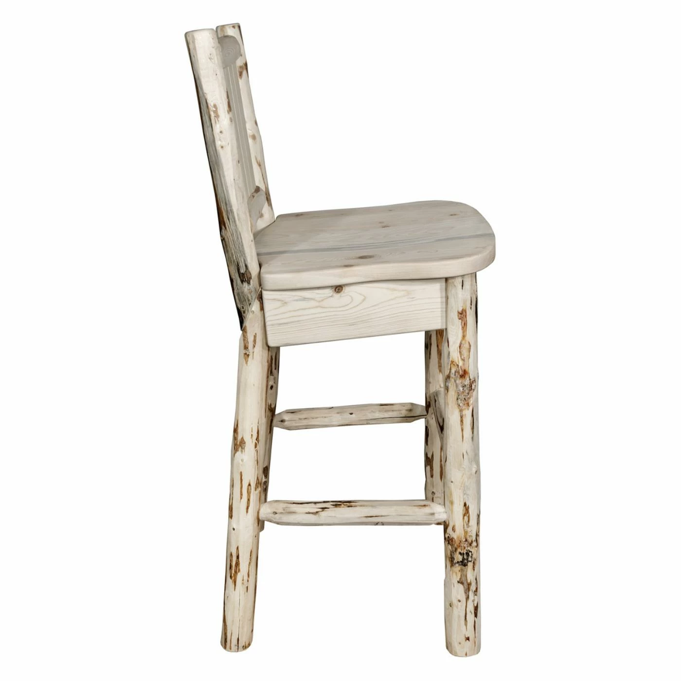 Inspired by the grand lodges found in the Rocky Mountains, the Montana Woodworks Montana 24 in. Engraved Counter Stool adds rugged beauty to your home. Handcrafted in Montana from genuine lodge pole pine to give you an heirloom quality piece, this stool will be a part of your family for years to come. Your choice of laser engraved designs add the perfect finishing touch. Perfect for relaxing after a long day, the seat back and arms are designed to ensure your comfort for long periods of time. Select from available finishes to easily complement your existing decor.