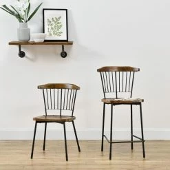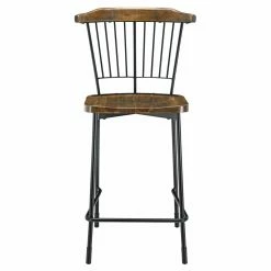 Modern industrial seating comes home in the New Pacific Direct Inc Greco 26 in. Armless Counter Stool – Set of 2. A mix of powder-coated steel and walnut-finished wood gives this counter stool its rustic chic look. Comfort features include a curved slat back, contoured wood seat, and footrest stretchers. This stool is scaled to fit your counter height table and comes in a set of two.