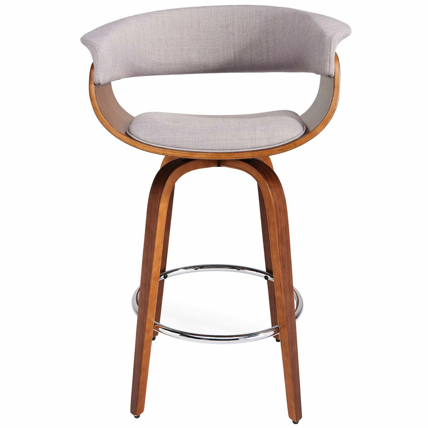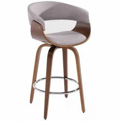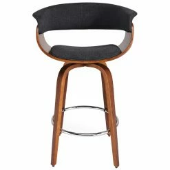 The 1950s-era !nspire Holt 26 in. Mid-Century Counter Stool is just as modern now as it was in the mid-century era. Clean shapes and crisp hues snug up coolly to your kitchen counter in this stool, which boasts a walnut-finished bentwood frame with four curved, angled legs connected at the base by a chromed metal foot rail and topped by a rounded seat. The padded seat and curved backrest are upholstered with textured fabric – choose from the available color options. The seat swivels 360 degrees so you and yours can enjoy conversation from every angle. Assembly is required, and a 90-day limited manufacturerβs warranty is included.