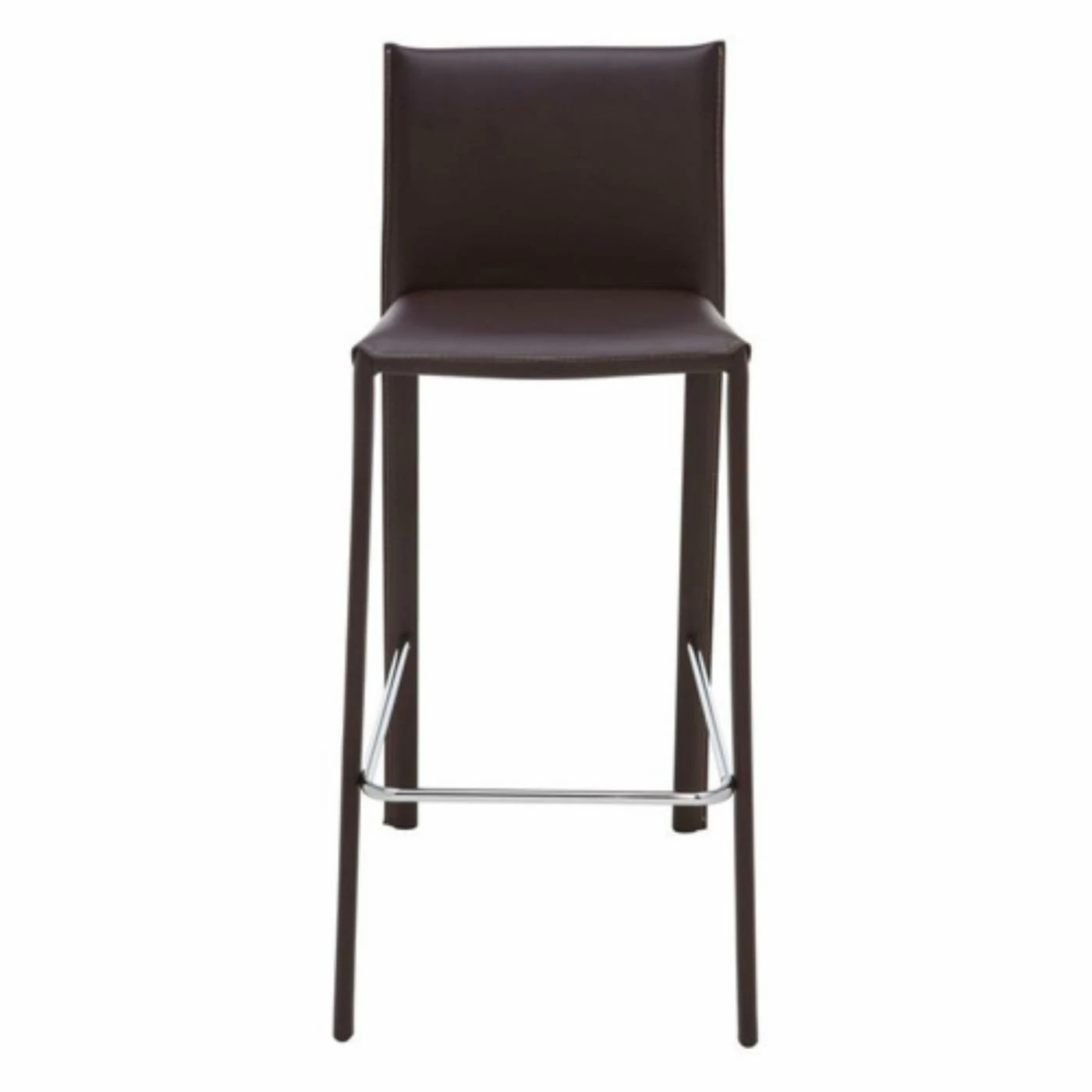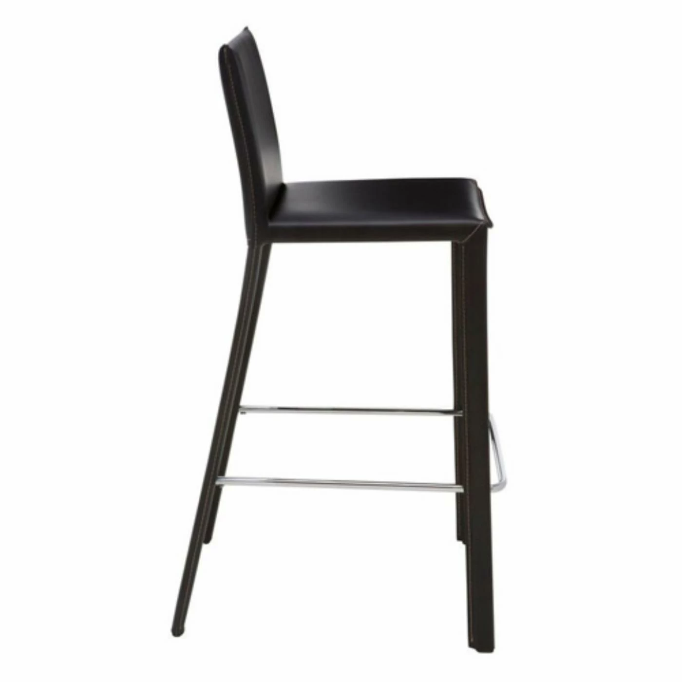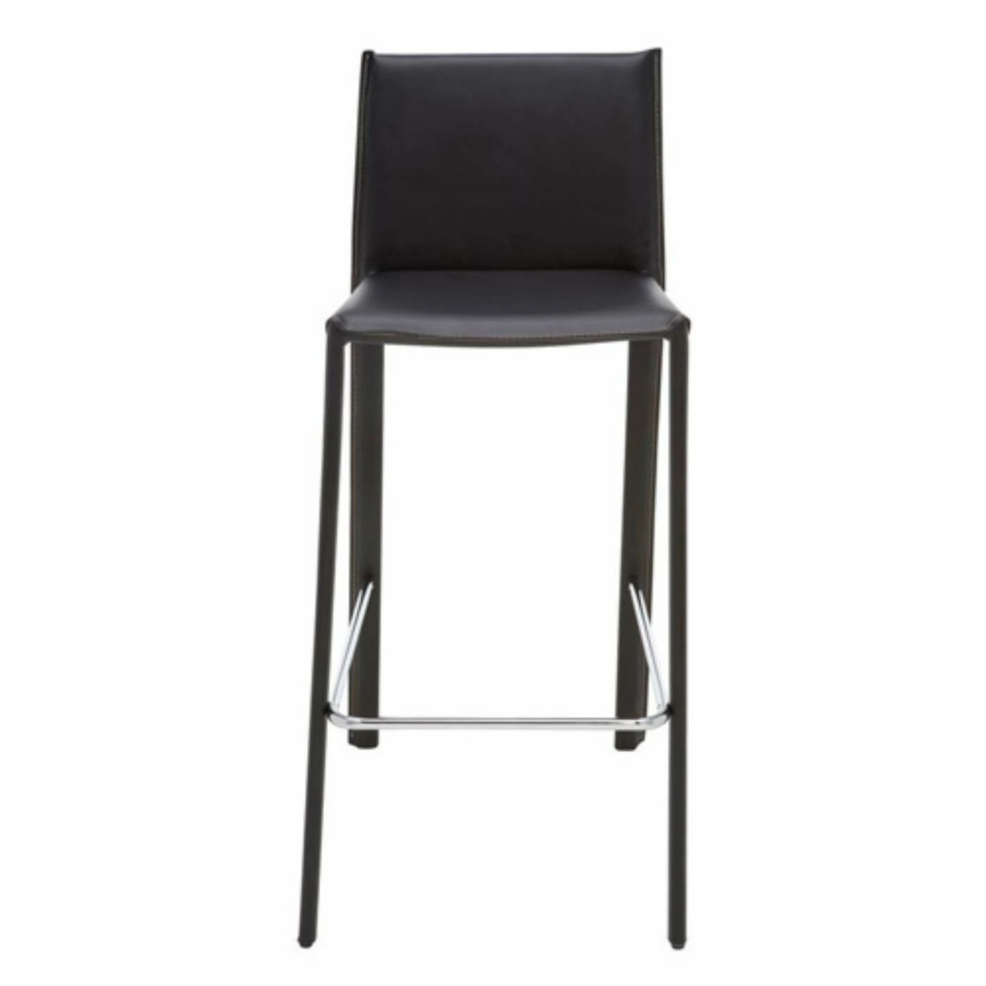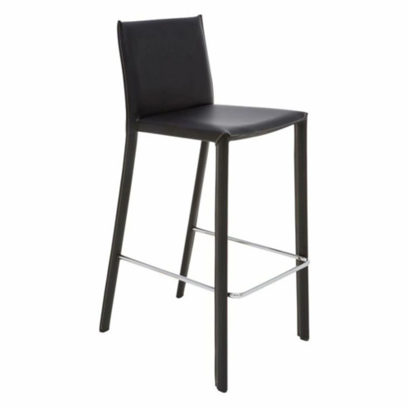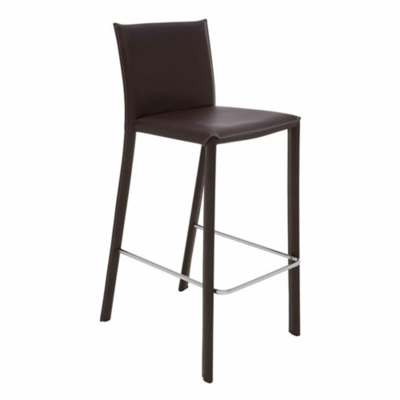 Give your contemporary kitchen counter a modern makeover with the Nuevo 25.5 in. Bridget Counter Stool – Set of 2. This set includes two armless stools with steel frames ad leather upholstery. Its monochromatic look comes in your choice of color.