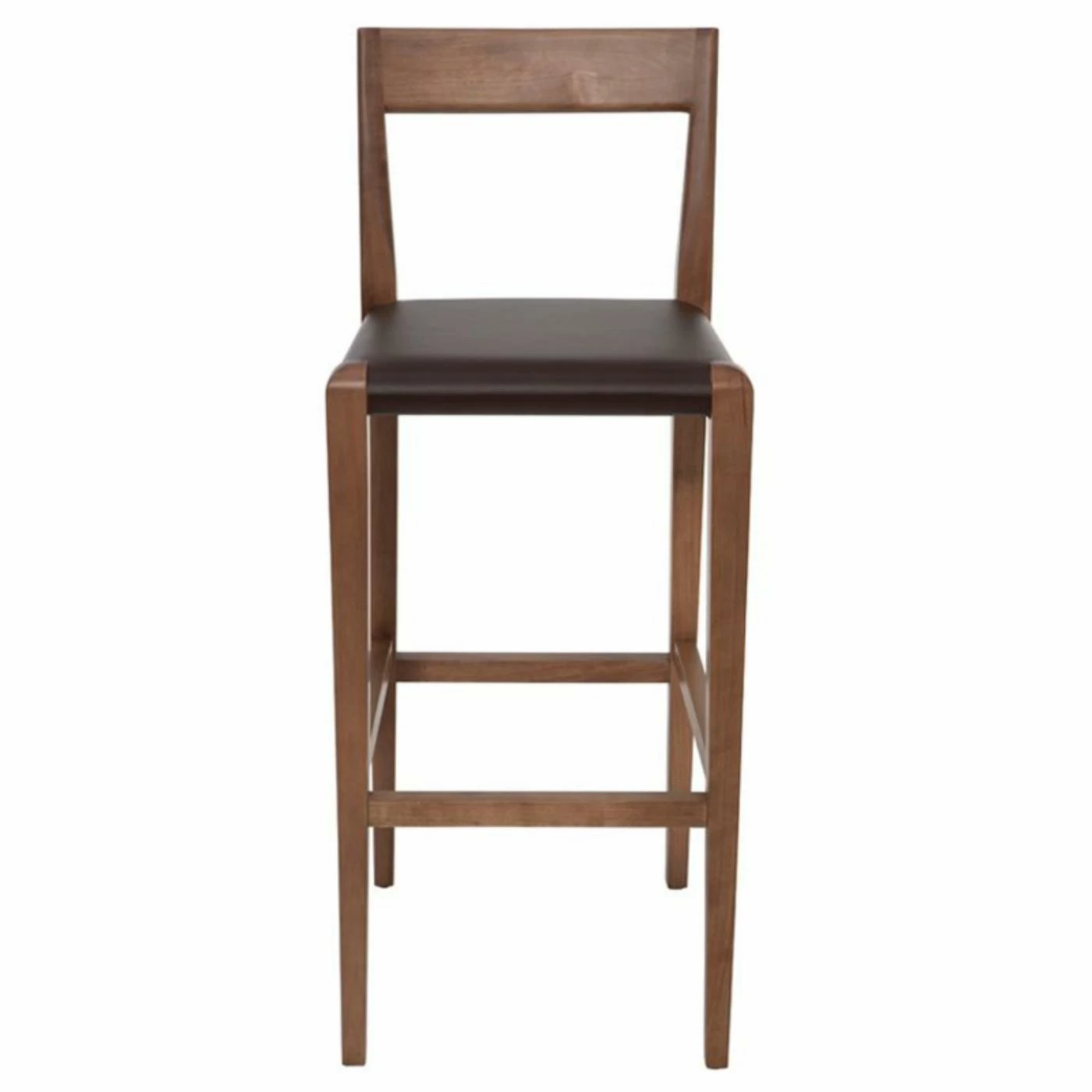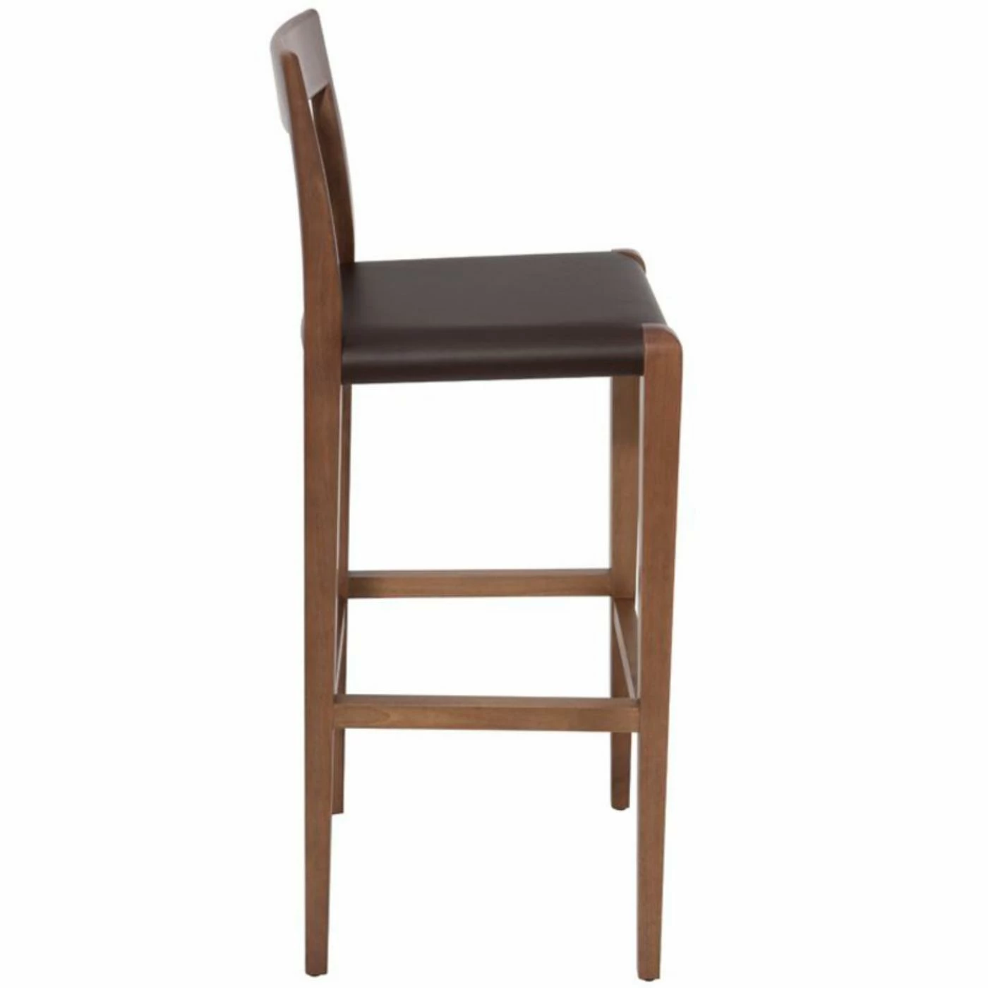 Reminiscent of Danish Modern design, the Nuevo 26 in. Ameri Counter Stool lends a high-quality, timeless feel to your space. The sturdy, solid wood construction offers a backrest and footrest for comfort, and the cushioned seat is covered in durable leather available in various color options.