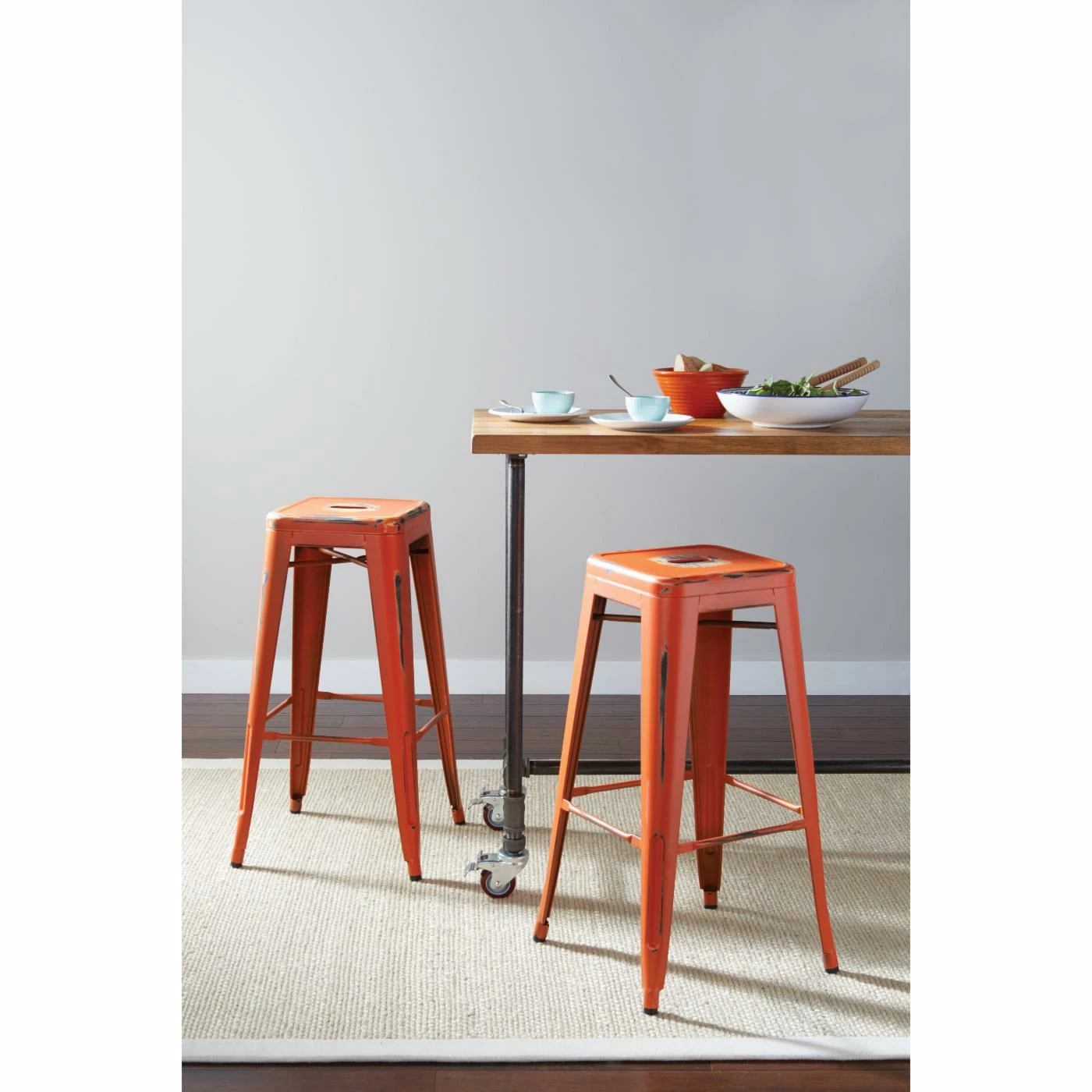 Industrial and modern stylings mix in the OSP Home Furnishings Bristow 26 in. Antique Metal Counter Barstools. It boasts sleek yet sturdy metal legs and a seat to withstand everyday wear and tear. Rubber feet prevent scuffs and scrapes on flooring. This barstool is offered in your choice of available finish. Available as a set of two or four stools.
