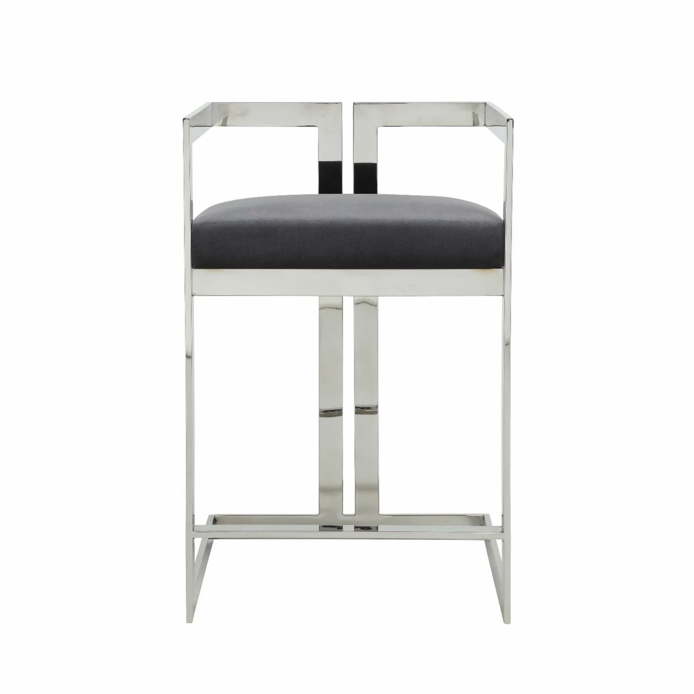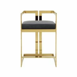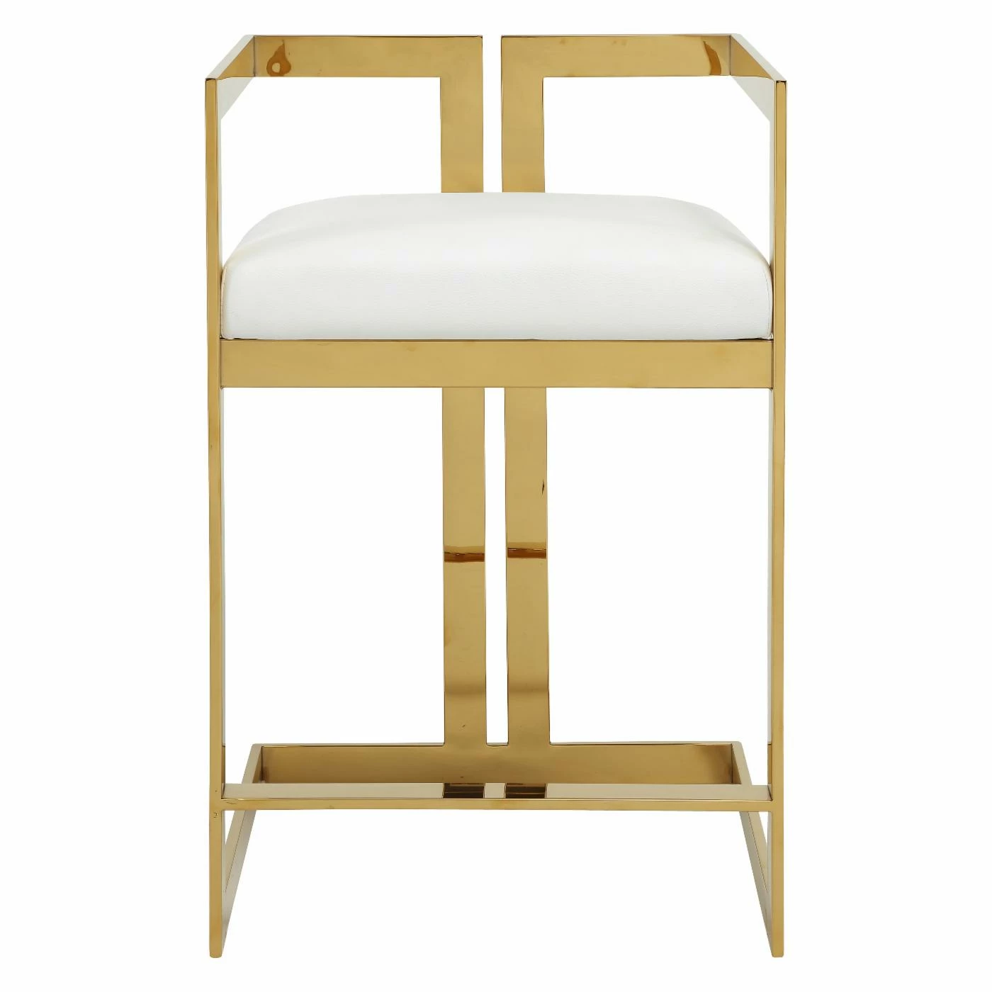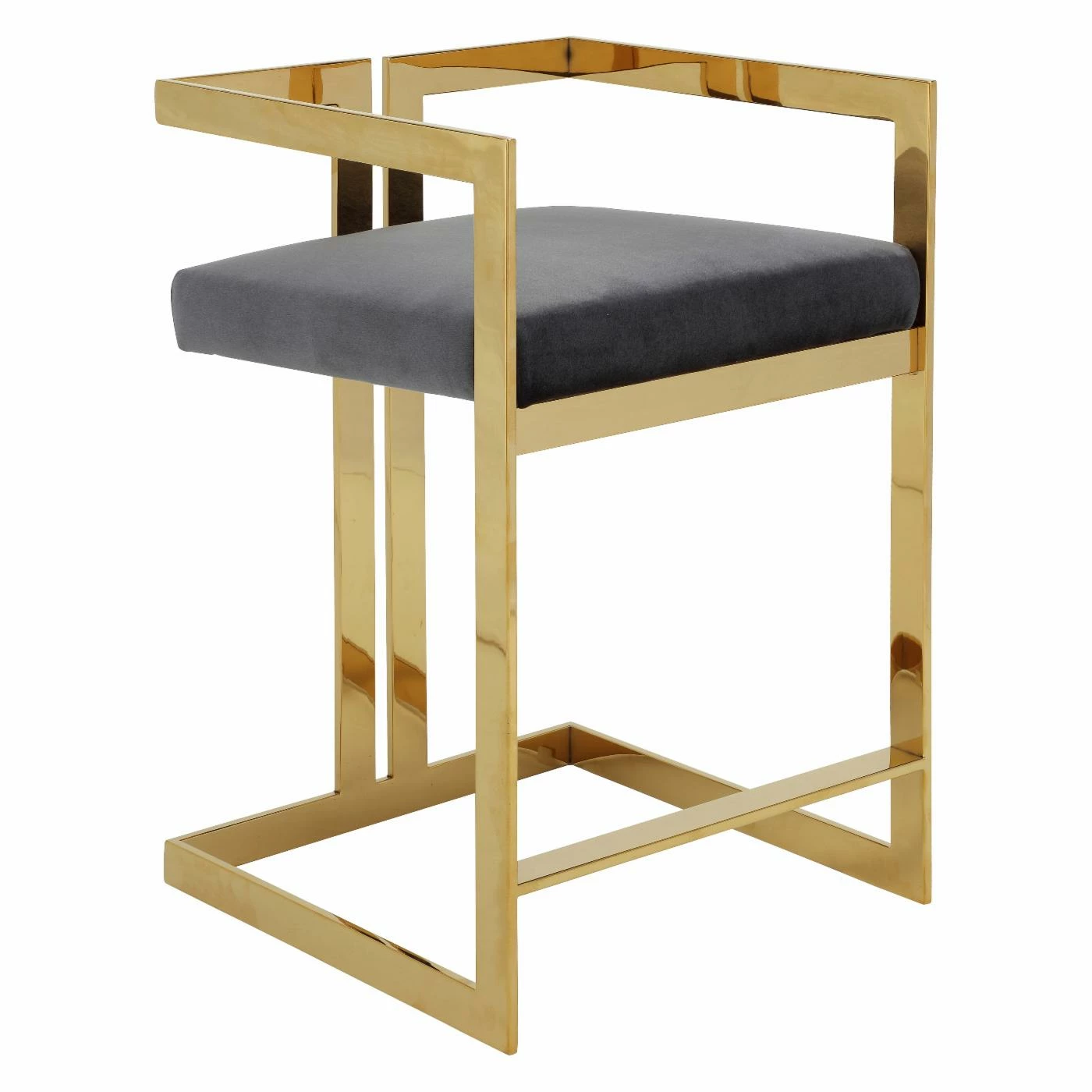 Slide the Pangea Home Kenzie Counter Stool under your counter or table when not in use to keep the room looking modern and uncluttered. Clean, balanced lines are accented by the sweet shimmer of precious metal. Seat options are offered in soft velvet and easy-care faux leather. No assembly required. Choose from available frame colors.