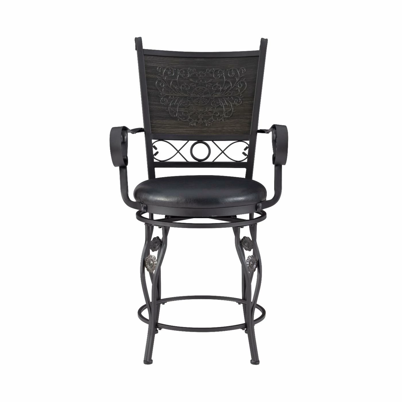 - Round metal brace acts as a footrest and strength
