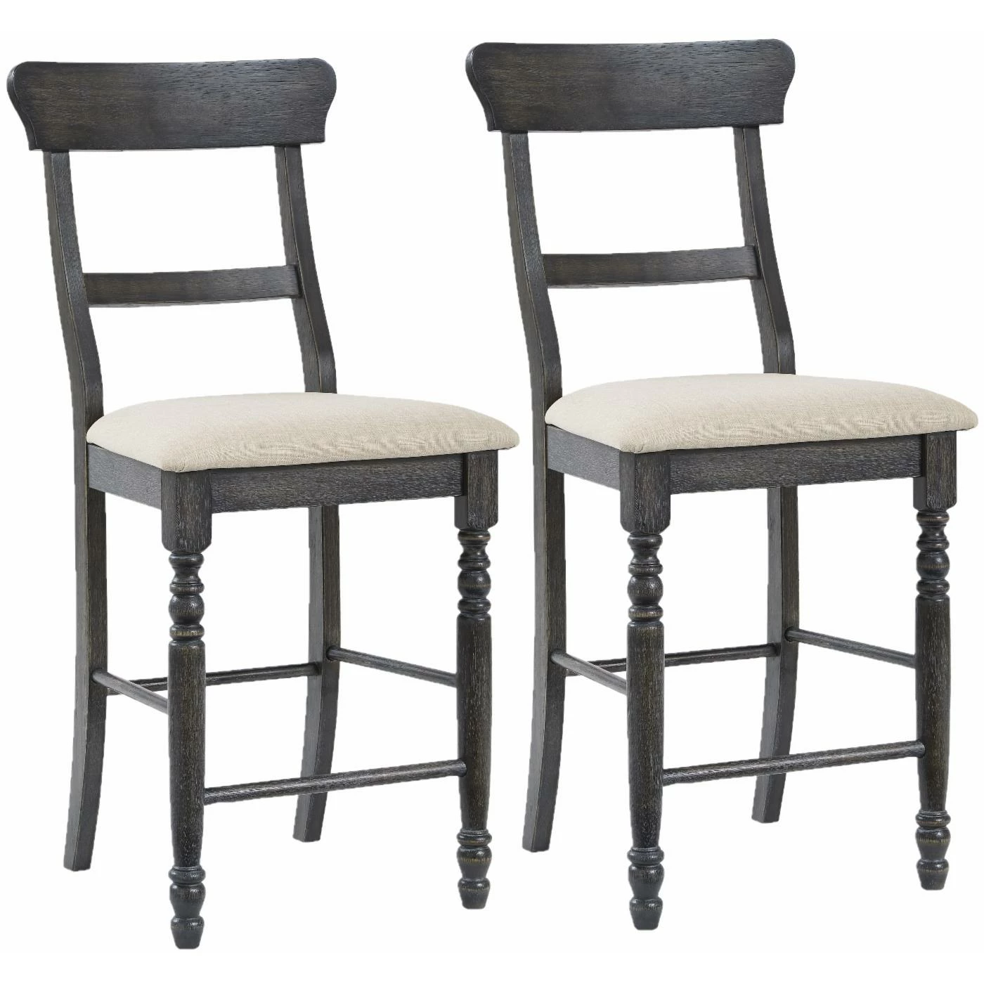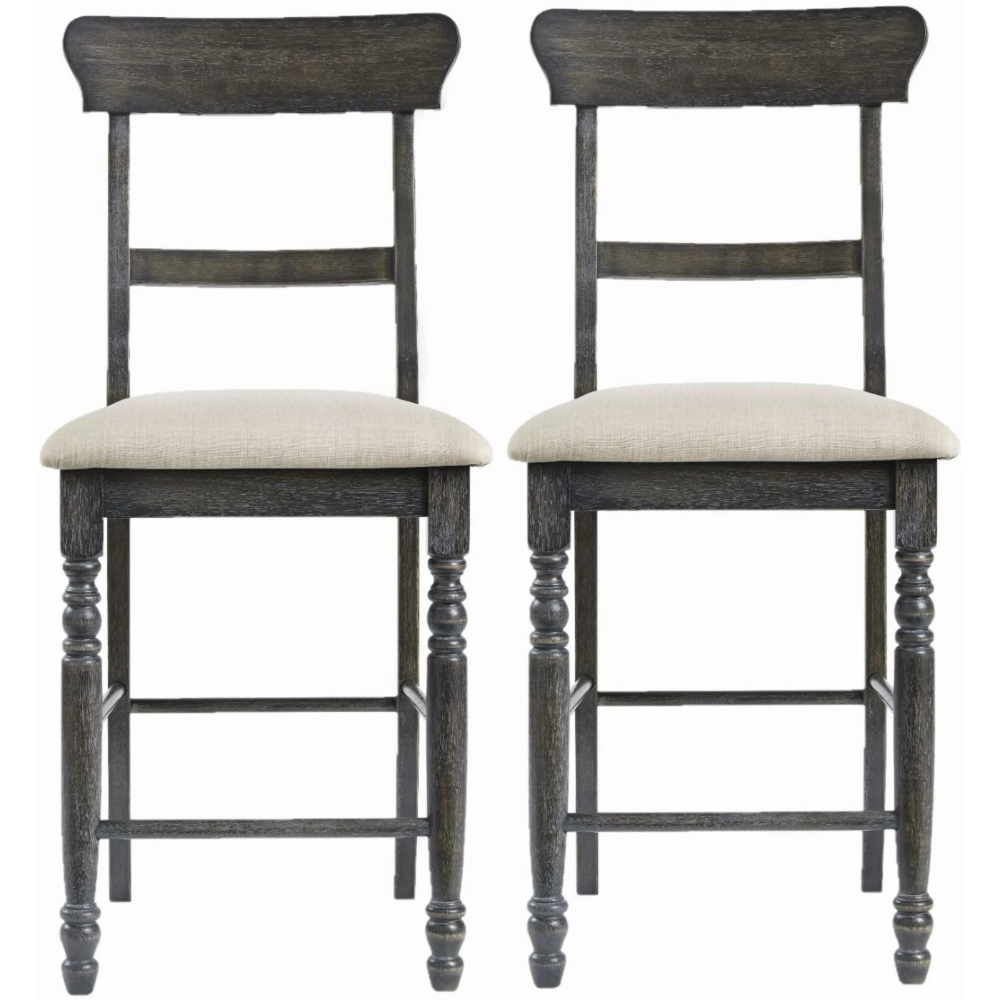 Pair your luxurious dining space with the modern-rustic charm of the Progressive Furniture Muse Ladder Back Counter Height Dining Chair – Set of 2. Each of these two handsome chairs is made with high-grade rubberwood, with clean lines and a ladder-style back adding visual sophistication. Its scrubbed oak veneers are given a weathered pepper finish that provides a paradoxically cool warmth, lending further contemporary charm to your interior. Pair these chairs with the Muse Dining Table for a cohesive and supremely attractive dining space. Some assembly is required.