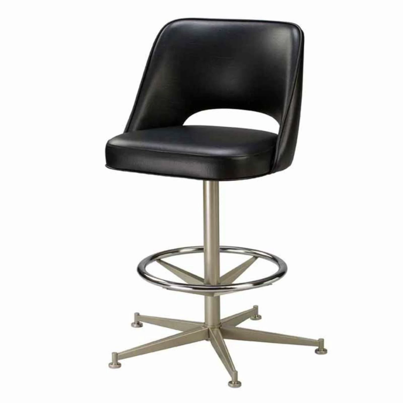 When the going gets tough, the tough get the Regal Bucket Seat with Cut Out Back 26 in. Rod Frame Metal Counter Stool. Your choice of a variety of upholstery colors and finishes. A classic steel rod frame with footrest supports the comfortable faux leather bucket seat. This counter height stool, suitable for home or commercial use, has a sturdy seat back and sleek armless design.