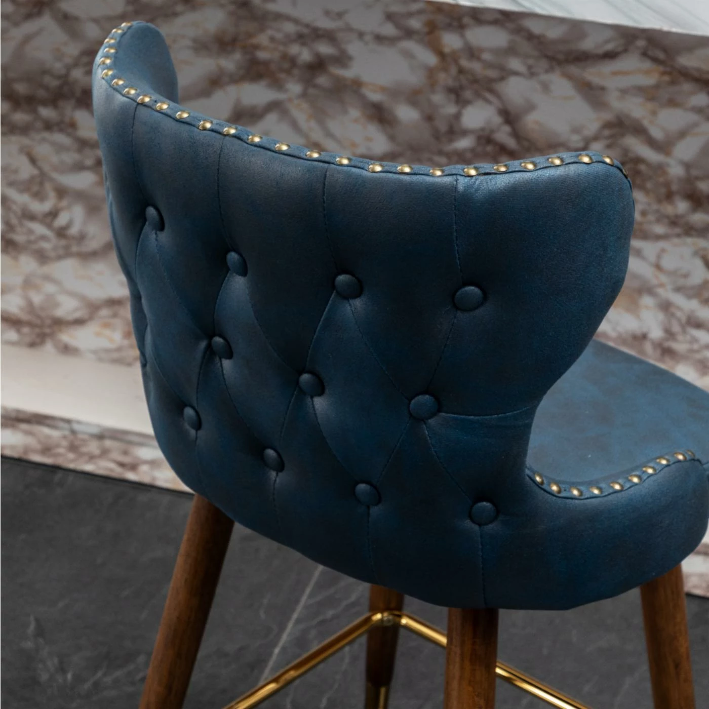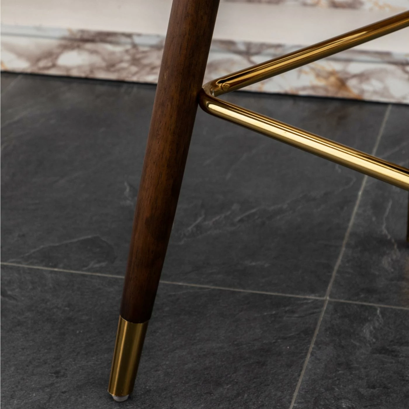 - Gold-finished metal footrest