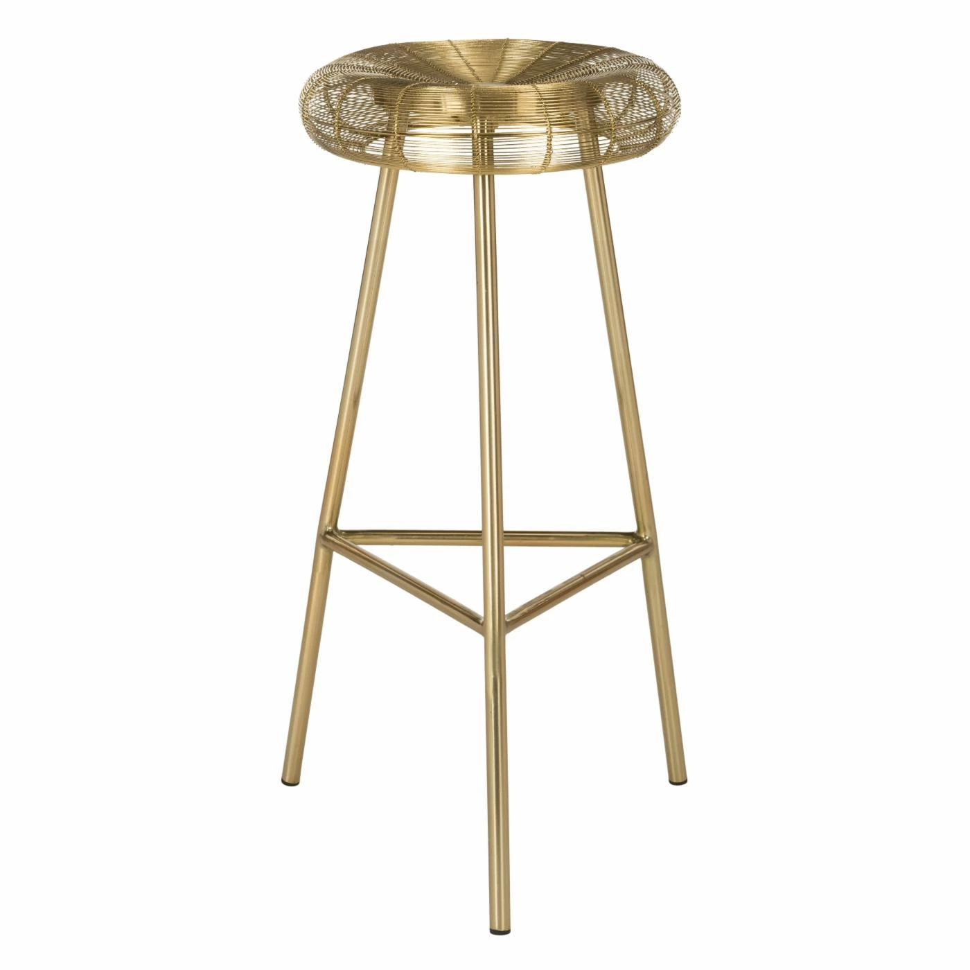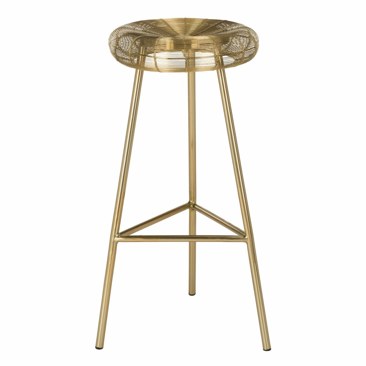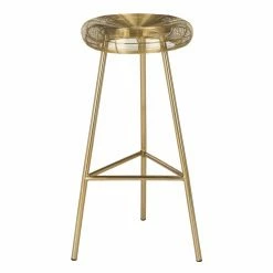 The Safavieh Addison 28 in. Wire Weaved Contemporary Counter Stool has a round, inverted seat with curved sides. It features a three-leg design with a triangular arrangement of stretchers providing added style and support. The lustrous gold finish enhances this stool’s modern look and gives it a luxe essence. This is an excellent choice for complementing glam and modern dΓ©cor