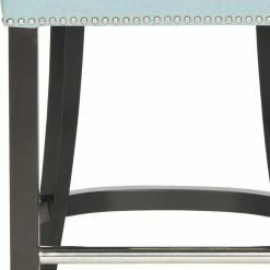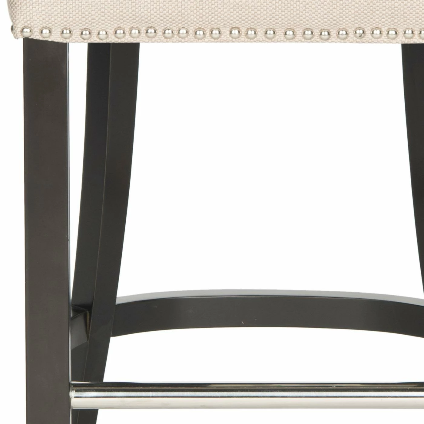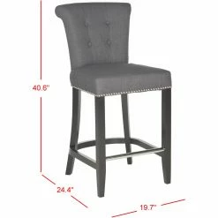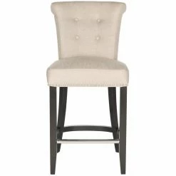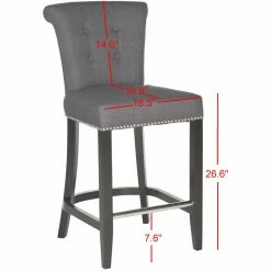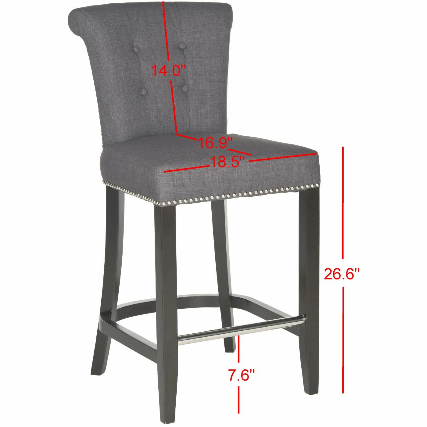Ring in a fresh new look for your counter height dining area with the Safavieh Addo 26 in. Ring Counter Stool. With a decorative metal ring on the back, this counter stool creates an eclectic appeal in your kitchen or dining space. Its linen-weave polyester upholstery is available in a choice of color, and it’s accented with silvertone nailhead trim. Below, the birch wood legs are finished in a rich espresso color.