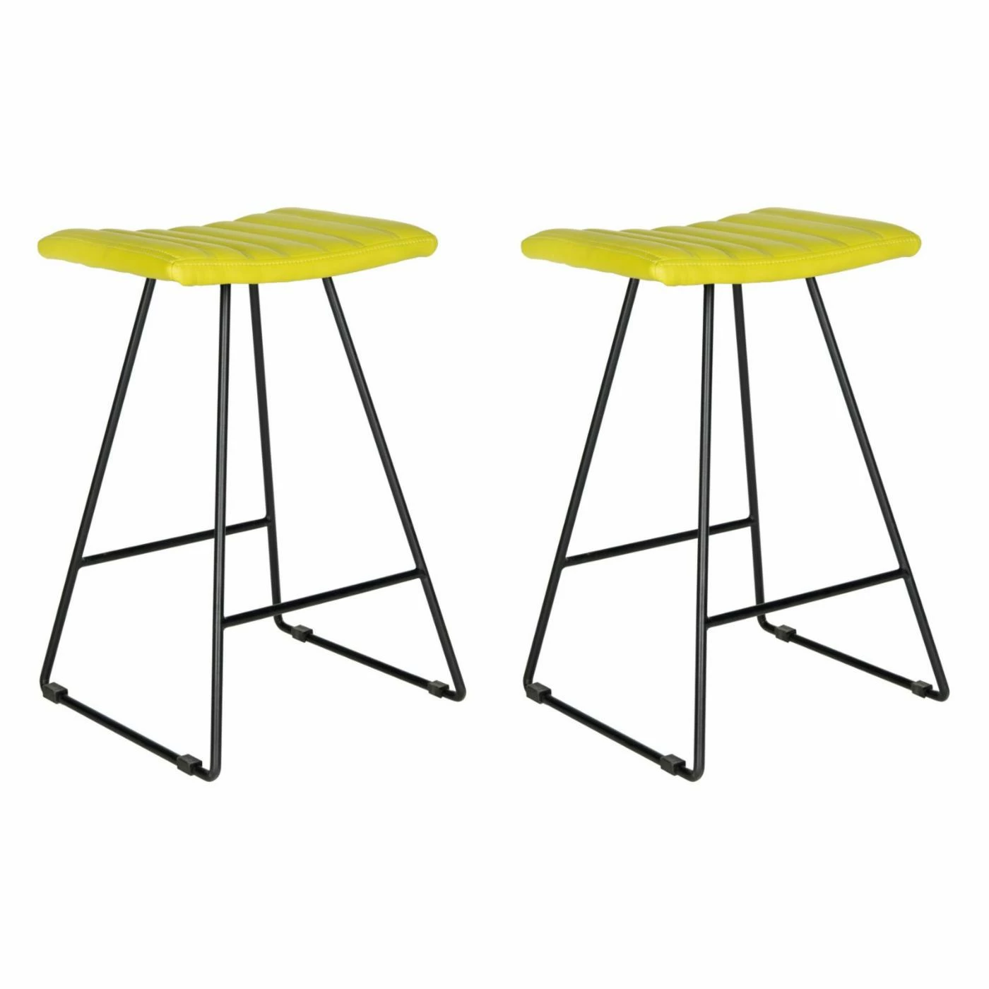 Put the finishing touch on your modern dΓ©cor with the Safavieh Akito 26 in. A-Line Counter Stool – Green. The bright green faux-leather finish adds a touch of flair to your dining area. A thin, bent metal A-frame gives these stools a clean, airy silhouette. The quilted, faux-leather seat ensures guests will be comfortable while you entertain in style.