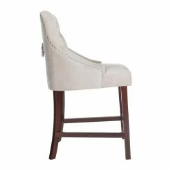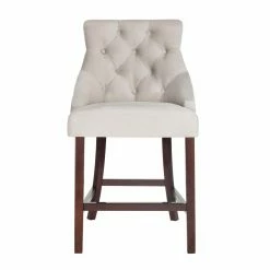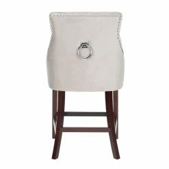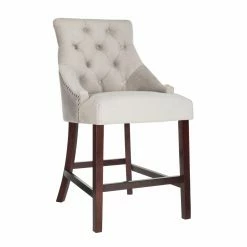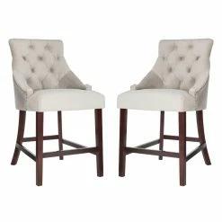 The Safavieh Eleni 26 in. Counter Stool – Set of 2 is the perfect contemporary set for your dining room or bar area. These sophisticated counter stools feature sturdy rubberwood frames in a cherry finish, topped with velvet upholstery seats in gray. The neutral colors and finishes allow these stools to seamlessly work with most color palettes. Button tufting and nailhead trim complete the set.