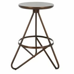 The Safavieh Galexia Backless Counter Stool provides your industrial or modern kitchen with a perfect counter-height seating option. This backless stool is modeled after classic mid-century pieces with a round seat and intertwined hairpin legs. A wide ring footrest binds the legs together. The stool is built from robust iron and comes finished in a gorgeous antique copper tone.