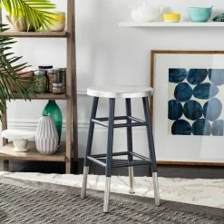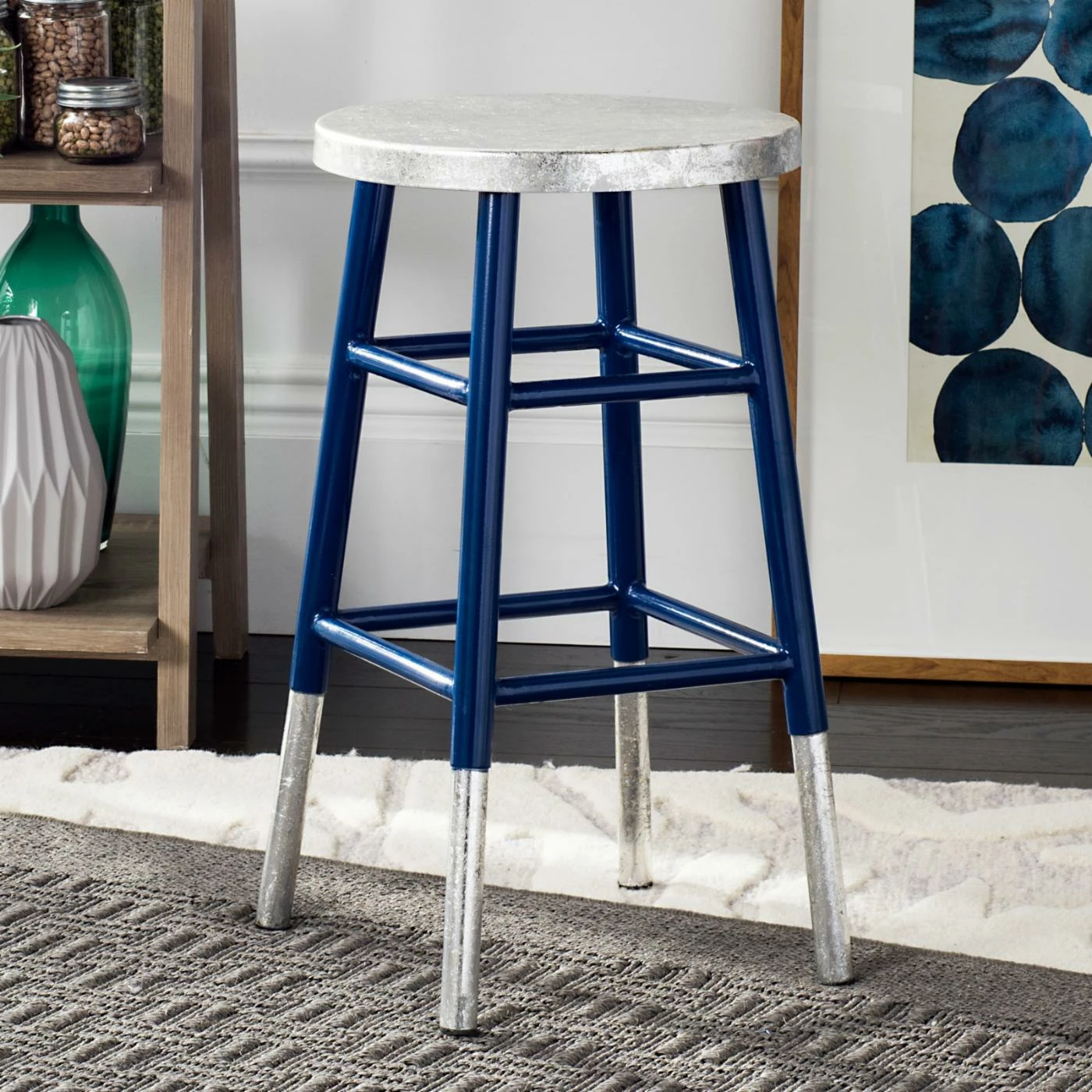 Add a pop of casual glam to your room with the Safavieh Kenzie 24 in. Silver Dipped Counter Stool. Though these silver-dipped stools are simple, they are anything but plain. Inspired by decorative arts, the chrome-capped, backless stools have a chic flourish that’s perfect for any bar, kitchenette, or nook.