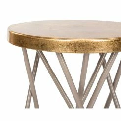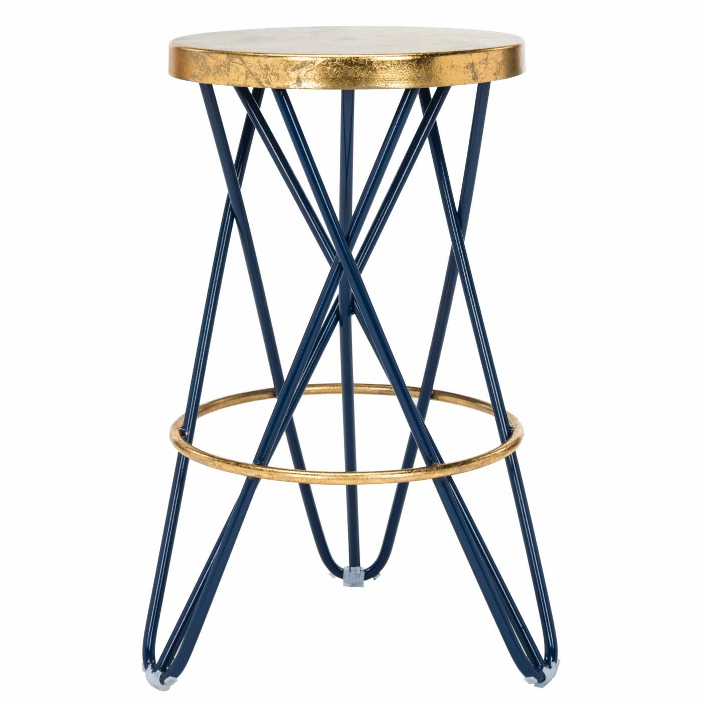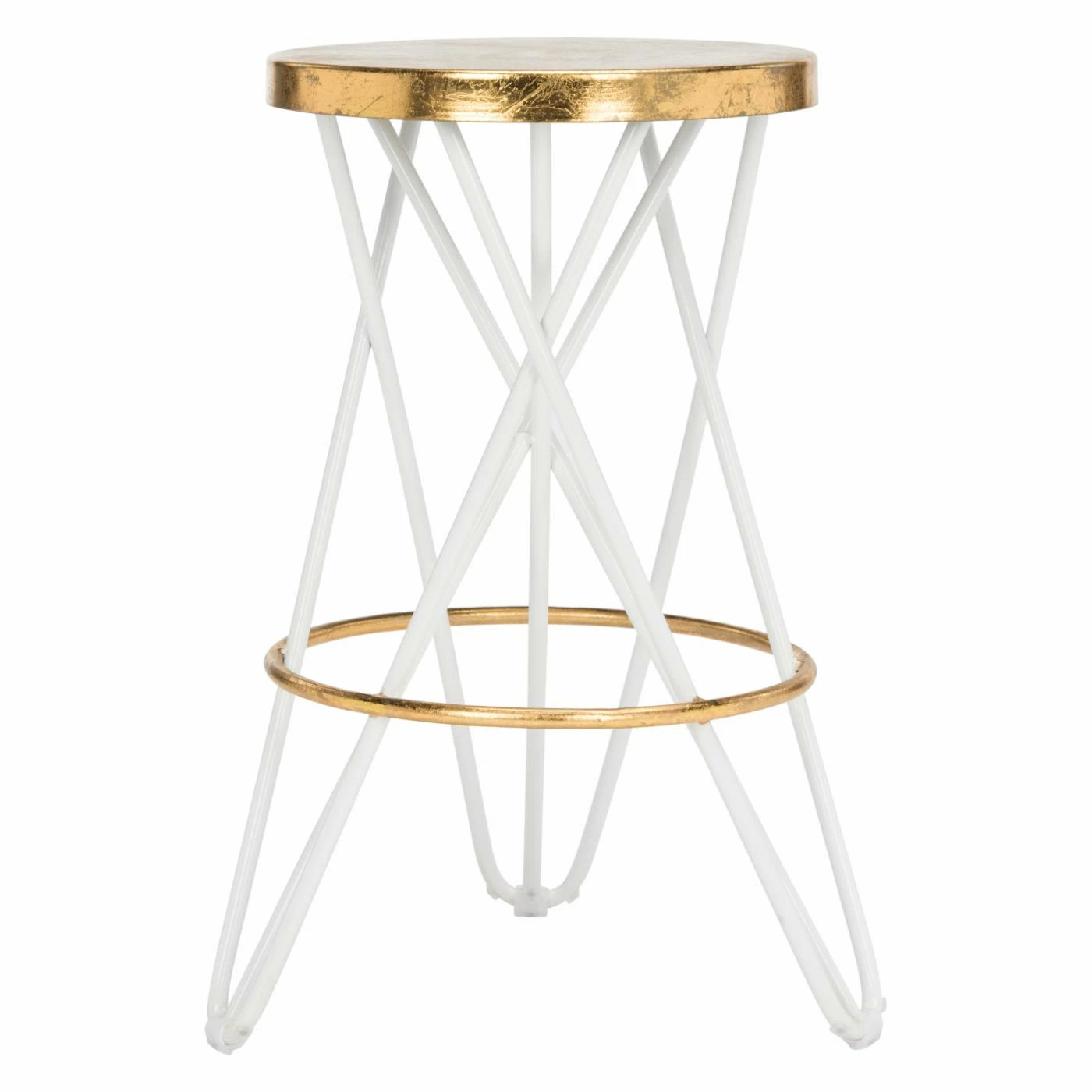 The casually glamorous Safavieh Lorna 24 in. Gold Leaf Counter Stool invites high style to your counter height table. Its crossed tripod leg base is offered in your choice of available finish and makes this stool distinctive. A simple round top and footrest ring are finished in bright gold leaf. No assembly required.