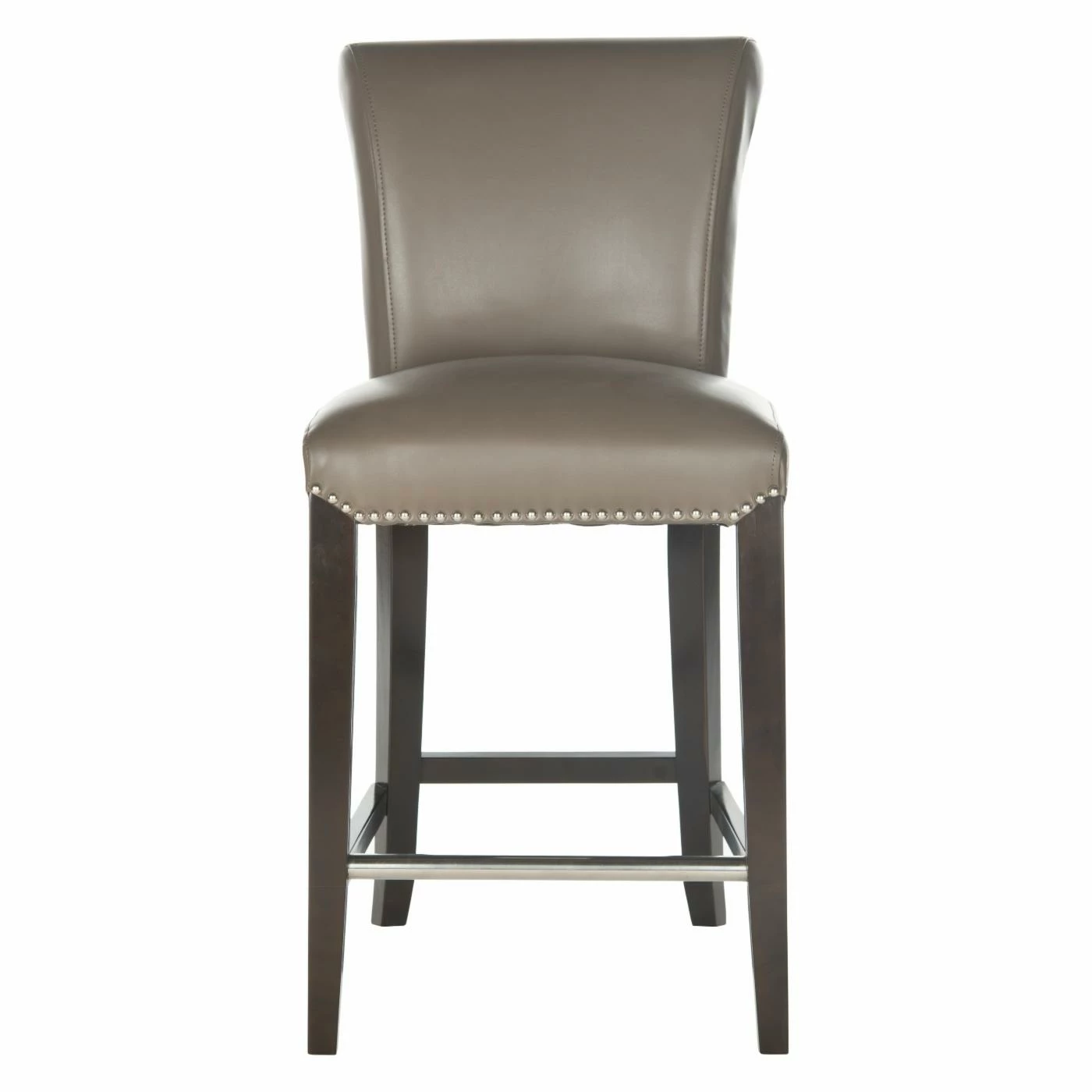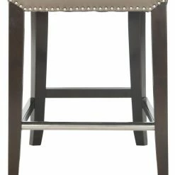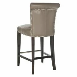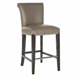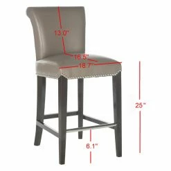 The rolled backrest and generous seat of your Safavieh Seth 25.9 in. Leather Counter Stool is upholstered in blissfully neutral bicast leather. This counter height stool is detailed with bright nailhead trim that matches its footrest. Featuring a sturdy birch wood frame, this counter stool boasts a versatile espresso brown finish. Assembly required.