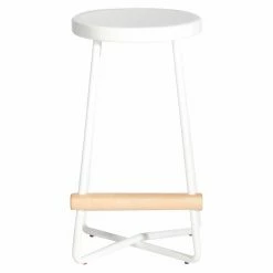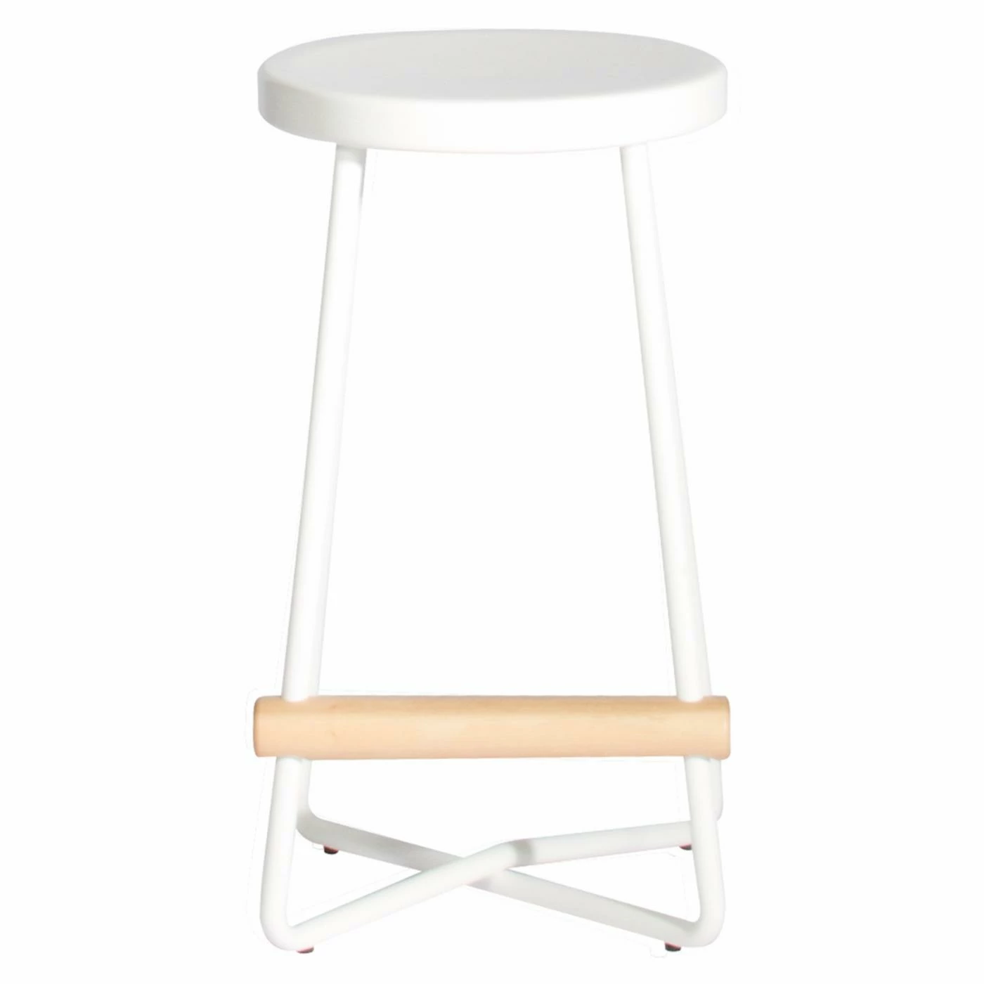 Modernize your space with the Sauder Woodworking Studio RTA Boutique Backless Counter Stool, which is designed with a round seat made from engineered wood and supported by a sturdy metal frame. It has a solid ash dowel footrest along with an overlapping base. The combination of white and natural tones creates a fashionable look that offers loads of styling versatility. And, this stool is designed with discreet footing to protect your surfaces.