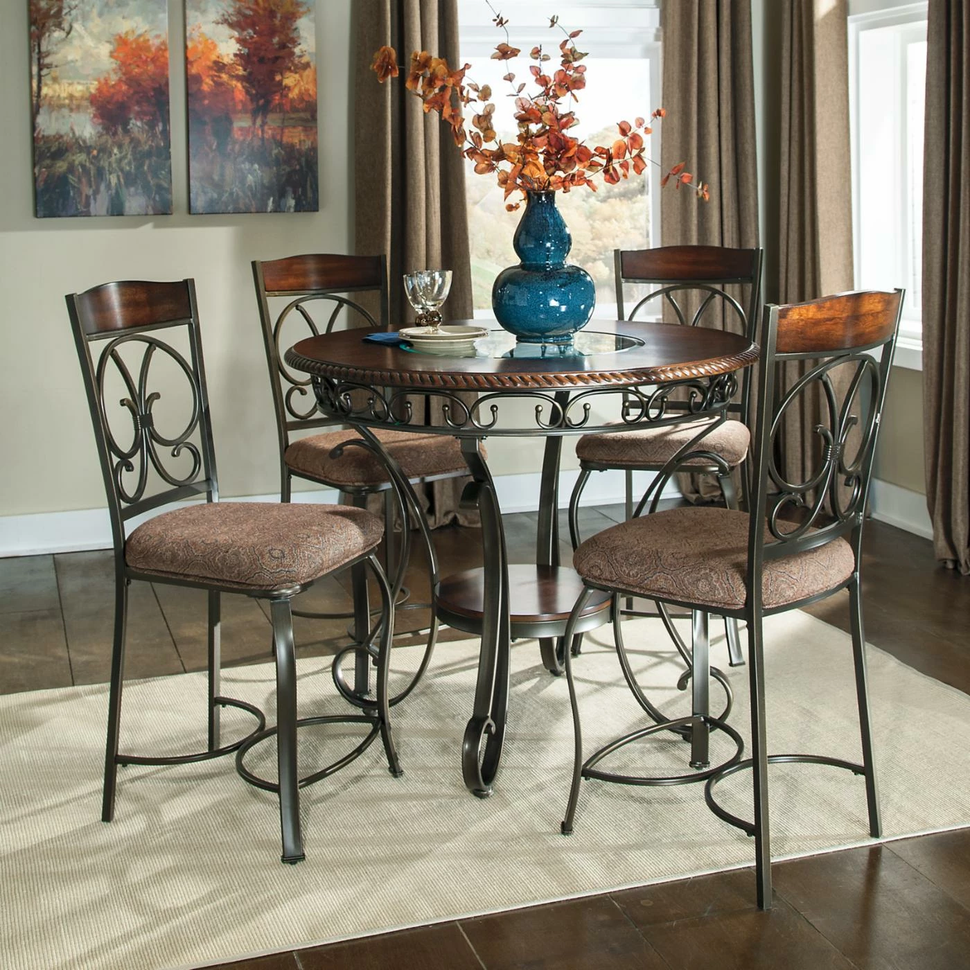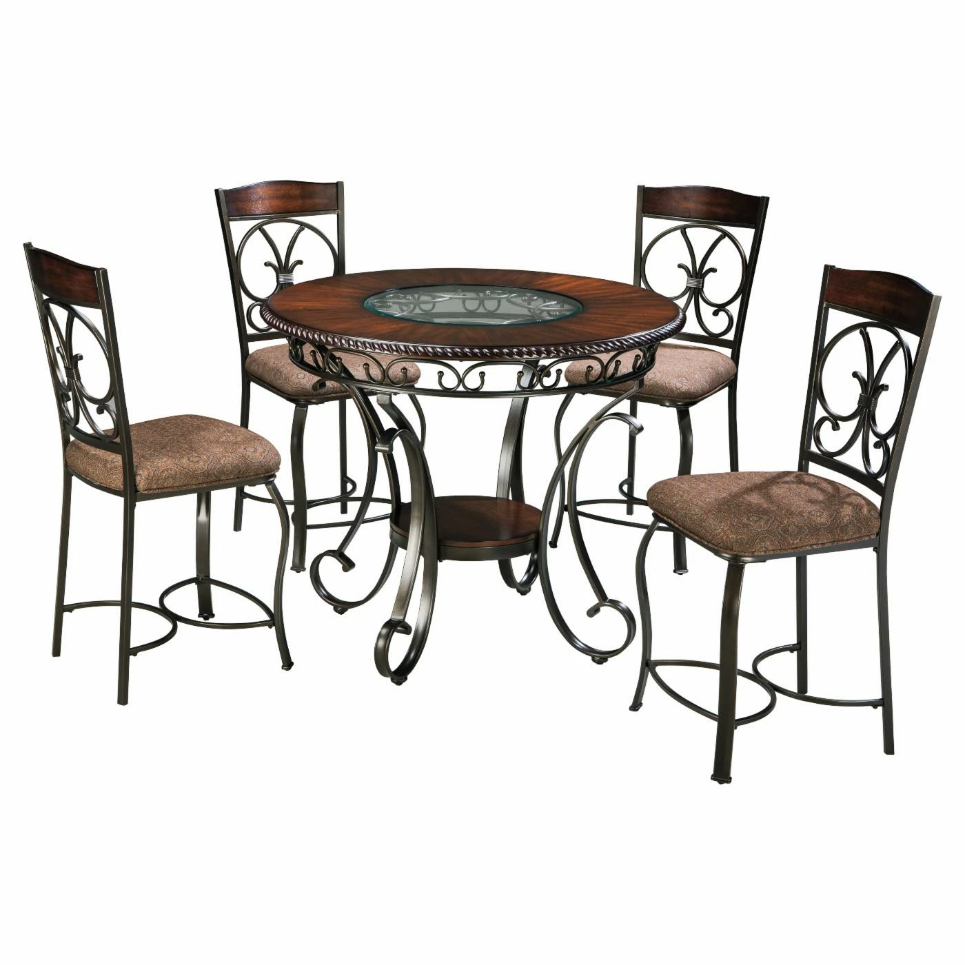 The Signature Design by Ashley Gambrey Counter Height Dining Chair – Set of 4Β is a lovely group defined by its rich earth tones and mix of various textural elements. Yes, this Old World-inspired quartet of glamorous side chairs will look fabulous surrounding any table. Each one is crafted from a gracefully curved metal frame that crescendos in an elaborate back pattern with manmade wood and veneer accents. The foam cushion seat is incredibly comfy and comes upholstered in polyester fabric in brown with a decorative tapestry design. Some assembly is required.