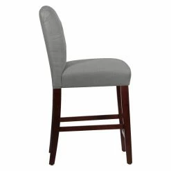 Elevate the wow factor of your kitchen island or dining area with the Skyline Furniture 26 in. Tufted Linen Counter Stool. Designed with todayβs transitional styles in mind, this counter stool is finished with diamond tufting. Espresso brown legs tie in with other wood finishes throughout your space. This quality counter stool is crafted to last with dense, durable rubberwood and premium upholstery fabric thatβs 95% polyester and 5% linen. Made in the USA with imported materials.