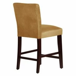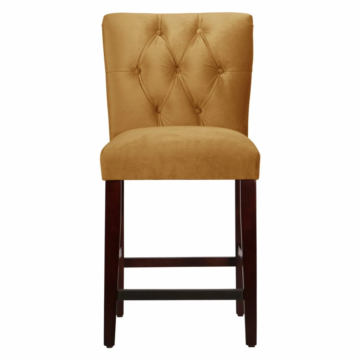 Created to coordinate with country and urban styles alike, the Skyline Furniture 26 in. Tufted Velvet Counter Stool offers a dressy-yet-comfortable seating option for your kitchen island or counter-height table. Tall rubberwood legs in an espresso finish support a plush padded seat and diamond tufted backrest. Choose from an array of hues to customize the look. Made in the USA with imported materials.