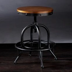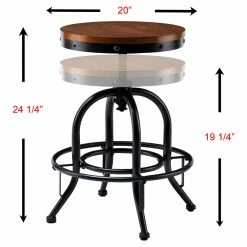 Thereβs no escaping the charms of the Southern Enterprises Industrial Adjustable Swivel Bar Stool. The irresistible vintage industrial charm of this stool can be found in its distressed dark pine seat and curved black metal frame. Adjustable from desk to counter height, this stool is a not only a stylish addition, but a practical one, too! Assembly is required.