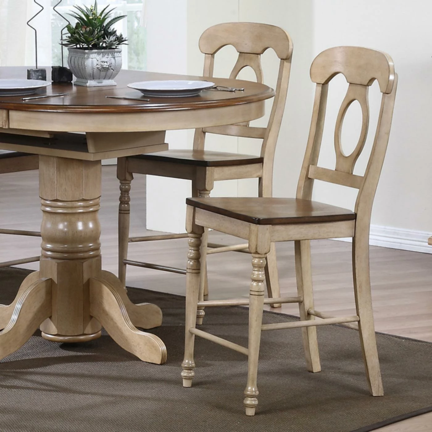The Sunset Trading Brookdale Napoleon Counter Stool has great farmhouse style perfect for your casual conversation area. This stool stands at counter height, making it a charming addition to your eat-at counter or taller dining table. Comfortable and sturdy, this chair will quickly become the household favorite.