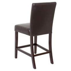 The Sunset Trading Kemper 24 in. Brown Vinyl Counter Stool offers a fresh take on the classic parsons-style dining chair, raising the seat to a versatile 24 inches and upholstering its tropical hardwood frame in chic brown vinyl. Sized for counter-height dining tables, breakfast bars, kitchen islands, or home pub tables, this versatile stool features a leg stretcher foot rest and padded seat for long-lasting seating comfort.