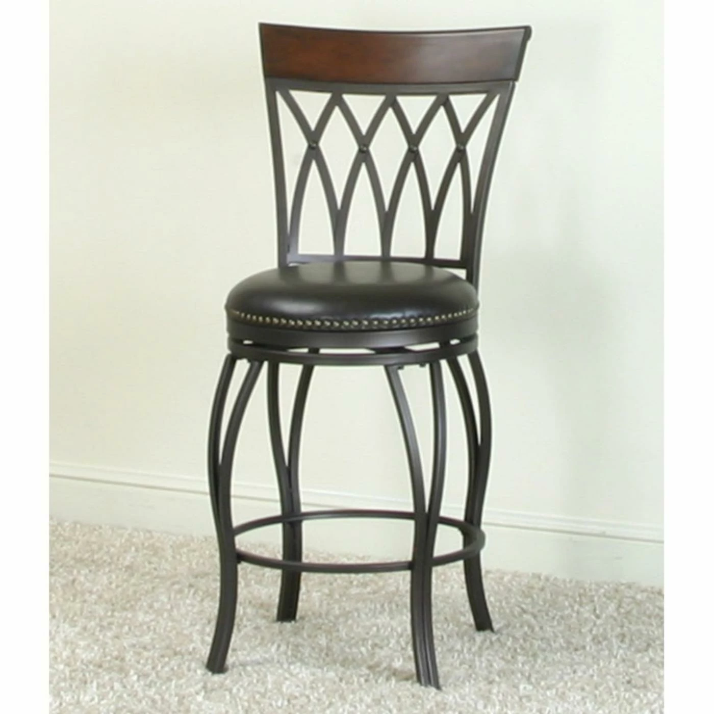 You can go anywhere from classic elegance to modern chic and you’ll still have a place at the table (or counter) for the Sunset Trading Victoria 24 in. High Back Swivel Counter Stool. This elegant and robust stool is crafted from tubular steel with a lattice back that is finished with walnut-hued wood. The thick cushioning of the 360-degree swiveling seat is covered with supple, bonded faux leather and finished with nailhead trim. The baked-on finish of bronze powder-coat adds a traditional feel while providing a low-maintenance, durable finish.