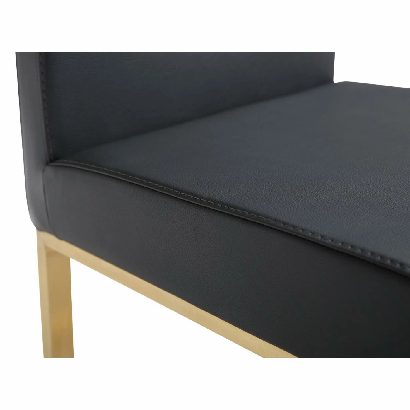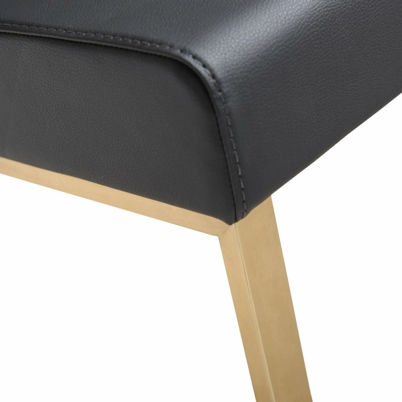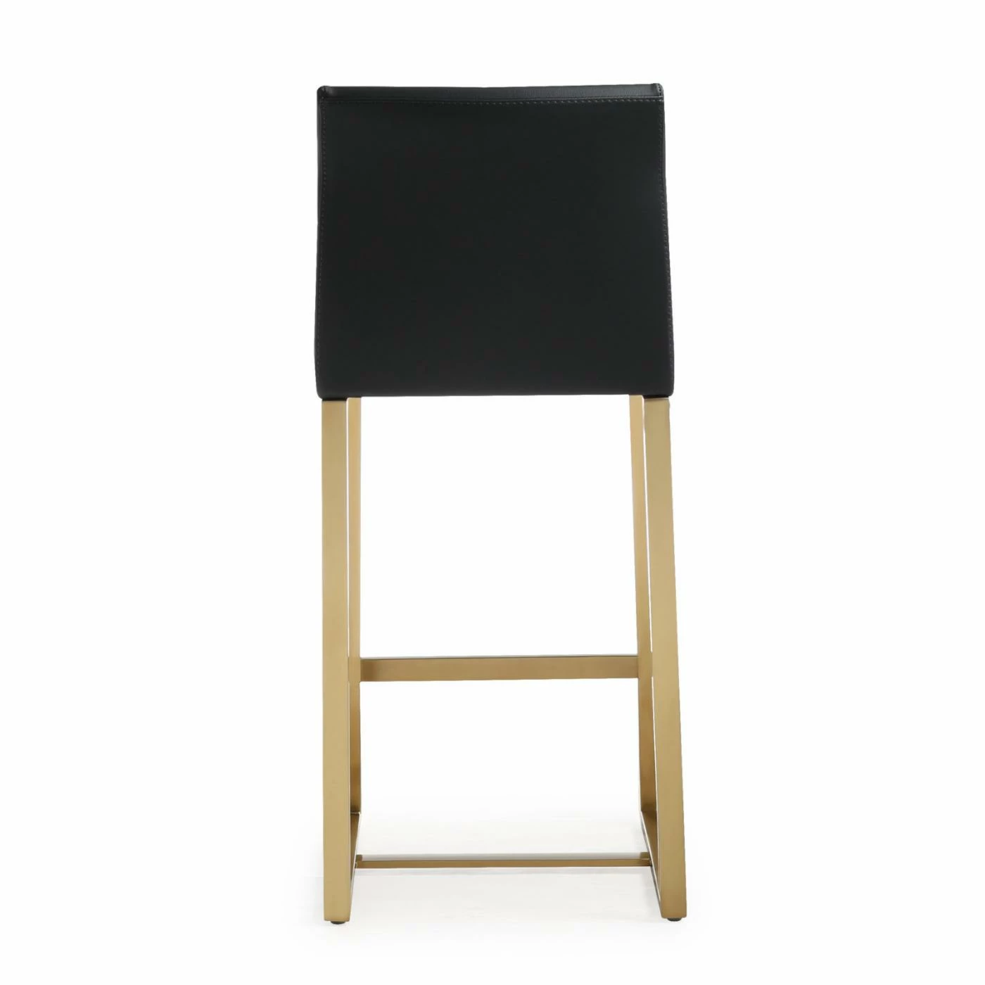 Clean lines lend a modern look to the TOV Furniture Denmark Gold Steel Counter Stool – Set of 2, making it a sophisticated choice for a bar or kitchen area. This tall counter stool is elevated by a metal frame and legs finished in sleek gold. The smooth, supple eco leather upholstery and padded seat and back add comfort and contemporary style.