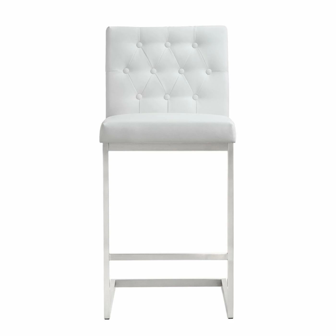 From casual meals to working to entertaining, the TOV Furniture Helsinki Stainless Steel Counter Stool – Set of 2 offers practical and fashionable modern seating for your counter-height seating area. Cantilevered, solid stainless steel bases are chromed to perfection and offer a sweet contrast against the well-padded, tailored seats and backrests with eco-leather upholstery. Diamond tufted backrests can tie in with more traditional dΓ©cor elements within your space, or they can simply add detail.