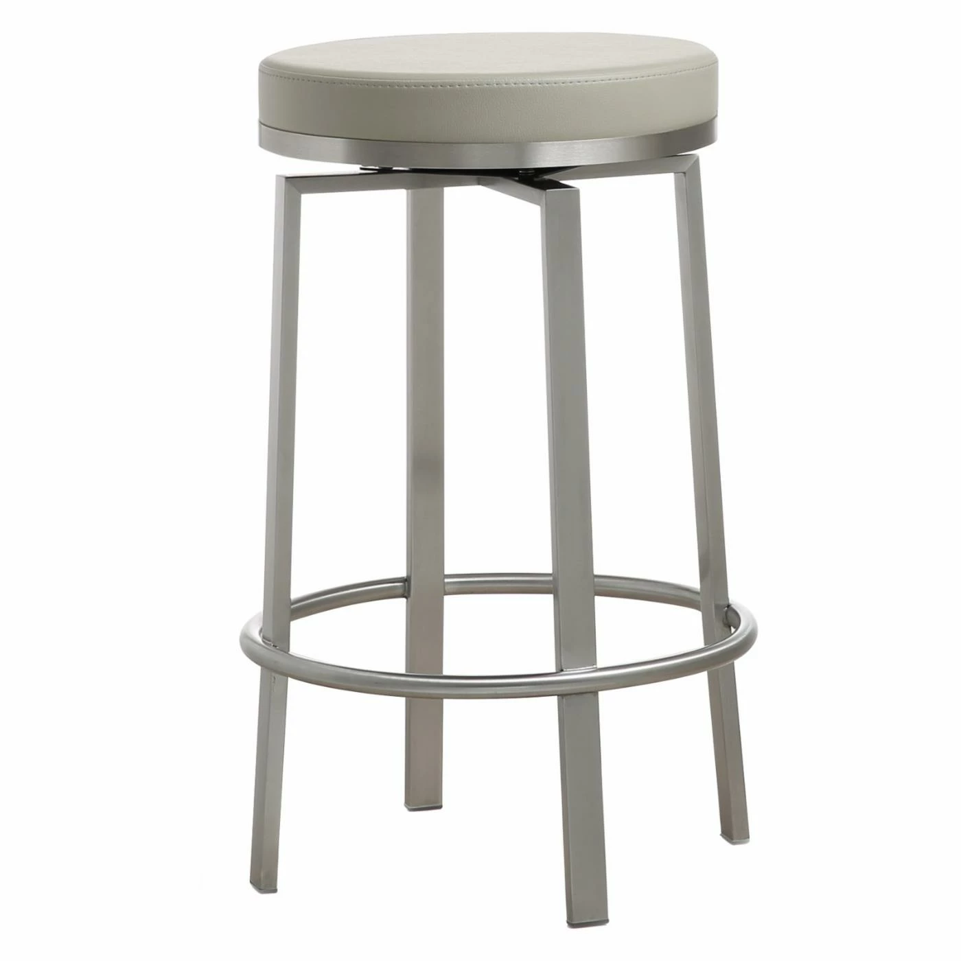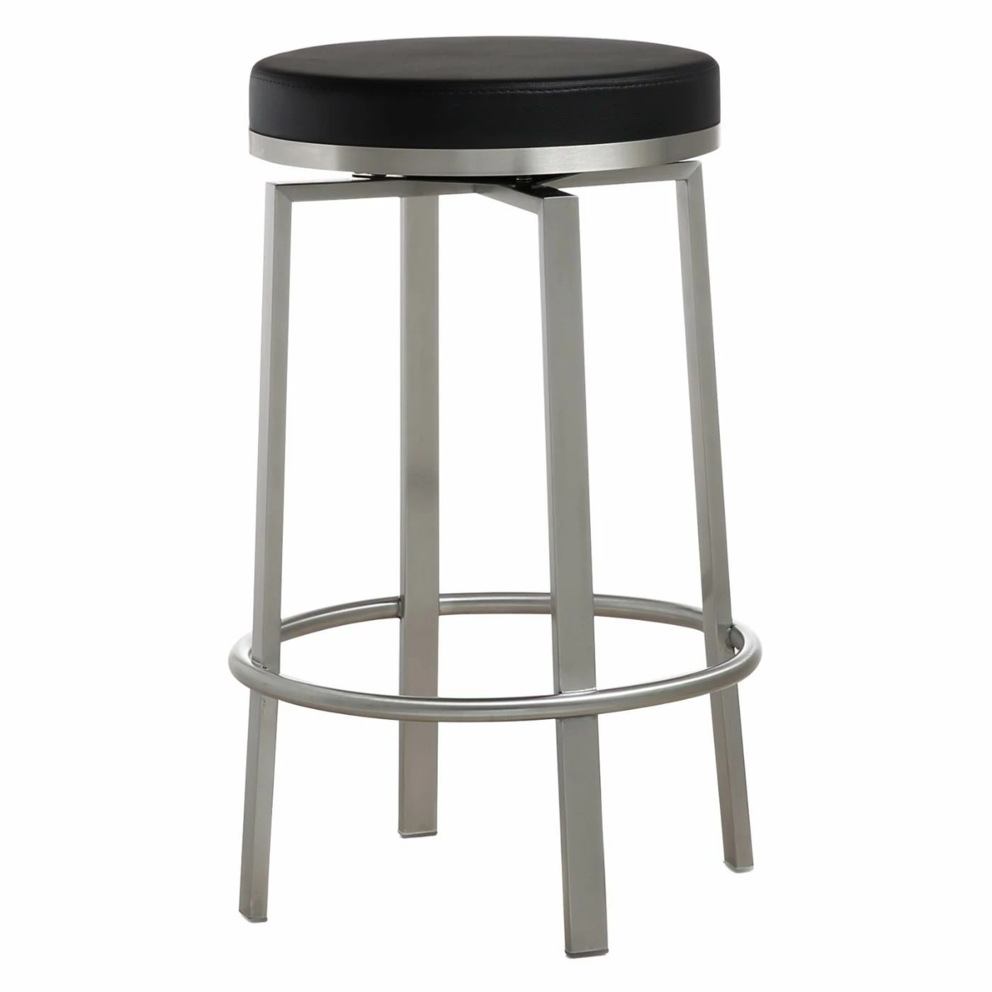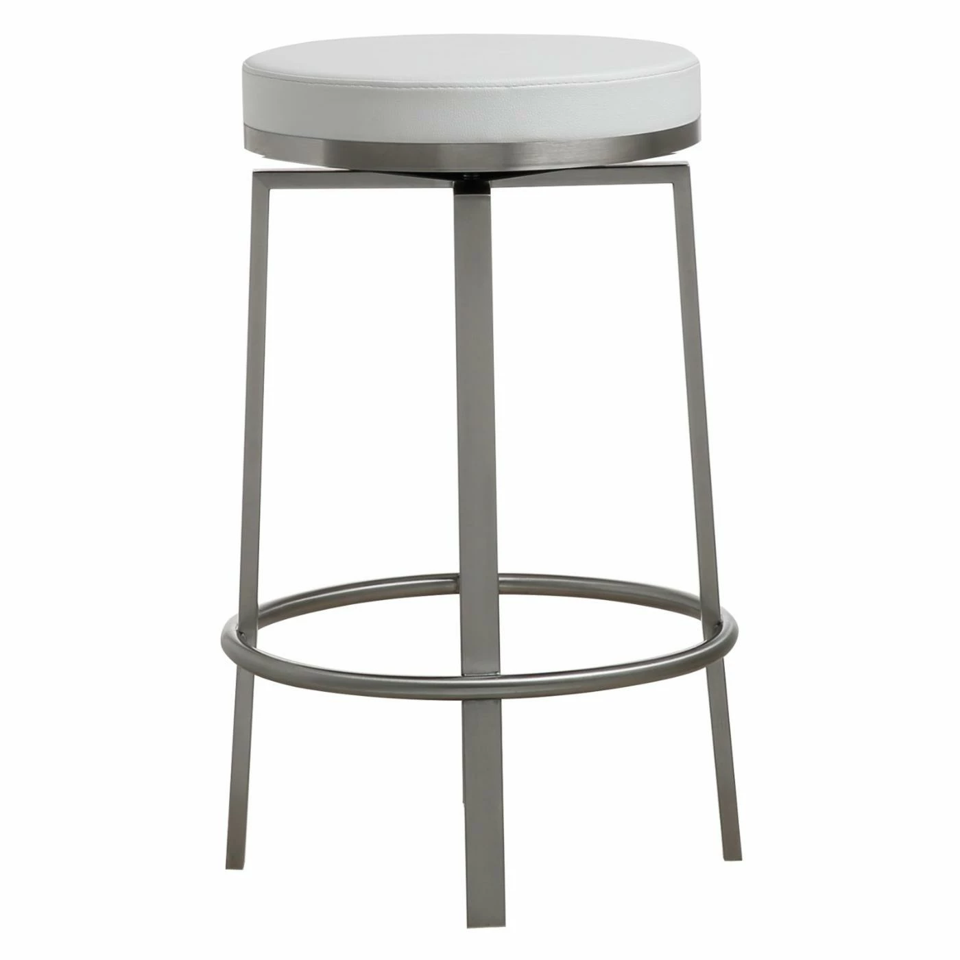 The modern TOV Furniture Pratt Swivel Counter Stool – Set of 2 is a fantastic complement to a kitchen island, tall dining table, or bar. Its sleek design consists of a stainless steel frame with four angular legs stabilized by a ringed brace that doubles as a convenient footrest. Up top is a round cushion seat that swivels 360-degrees and comes in the comfortable eco leather upholstery of your choice. Some light assembly is required.