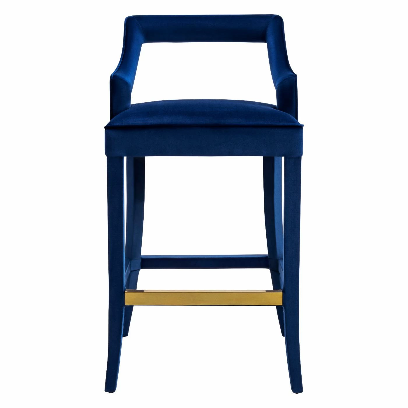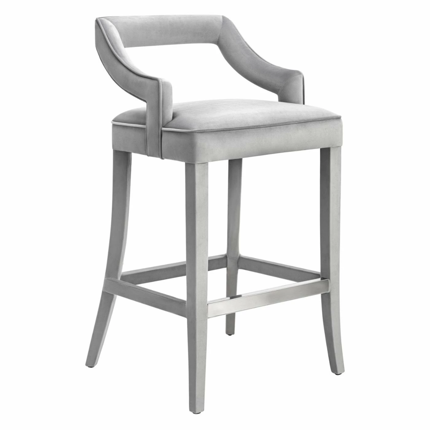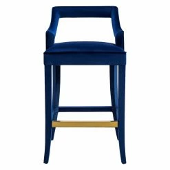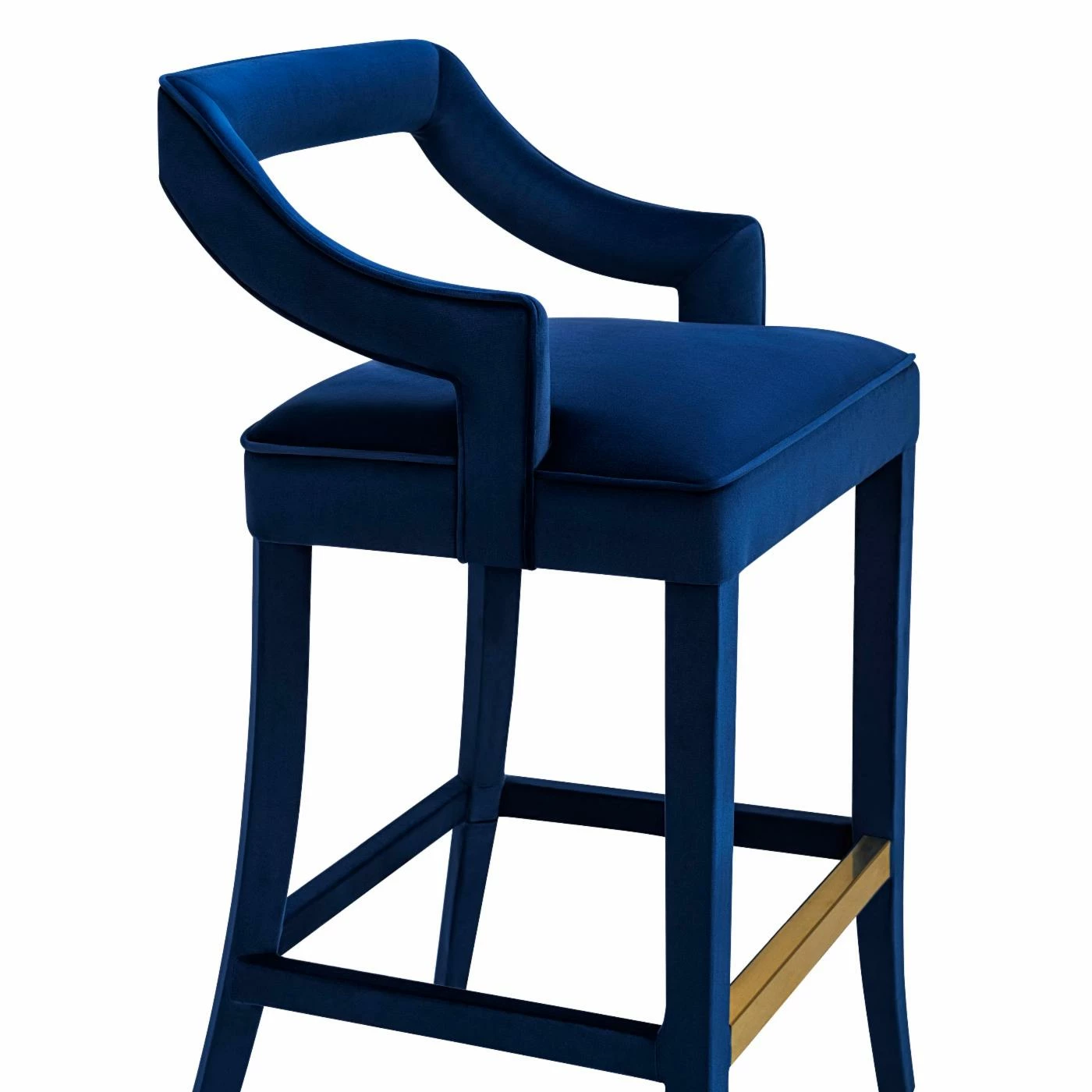 Reinvigorate your contemporary-style dining area with some stunning new seating, thanks to the TOV Furniture Tiffany Velvet 26 in. Counter Stool. This counter-height stool has an unmistakable profile with a horizontal backrest, with a floating look owing to the two curved armrests. The piece comes constructed from birch hardwoods and is wrapped in dense, soft foam for sitting comfort. The front footrest is crafted from metal with a brushed brass finish. High-quality velvet fabric upholsters the stool. Select your preferred color from the available options.