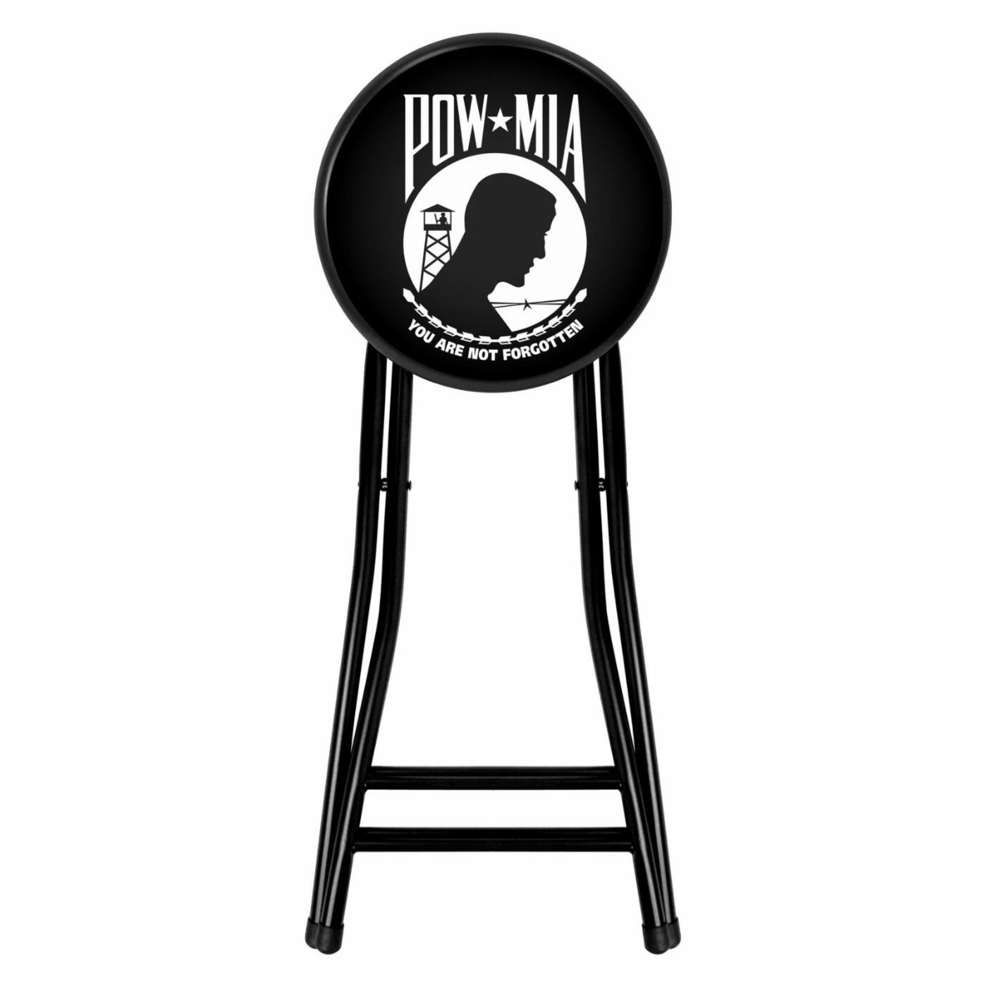 The Trademark Global POW 24 in. Cushioned Folding Stool – Black is functional seating that shows your support in a remarkable cause! This is a great option for bars, game rooms, and any other variation on the man-cave when limited seating is a problem. Whether you’ve invited too many people over or just don’t have the space to add another couch or recliner, this folding stool is a quick and easy solution that’ll give your guests comfort they’ll be proud to accept. Space-saving storage and convenient setup are perhaps the biggest advantages of this ergonomic design, but the long-lasting durability of the coated steel construction and easy-cleaning of the vinyl-covered cushion will certainly not go unappreciated. Don’t just get one – get a few and make it a party!