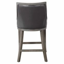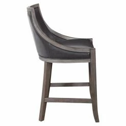 The Uttermost Elowen Leather Counter Stool brings comfort and transitional styling to your home by featuring a blend of faux leather over cushiony soft padding. The durable birch frame boasts a hand-rubbed charcoal brown finish that blends right in with a variety of decors. Its comfort and heirloom-quality construction make this stool ideal for pub tables, bars, or counters and is sure to make anywhere it’s placed the best seat in the house.