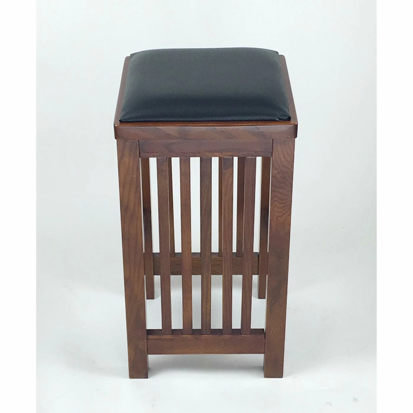The Wayborn Mission Style Barstool – Oak boasts a sturdy birch wood construction in a versatile oak finish. This backless bar stool includes a faux leather cushion and mission-style wood slatted accents for intrigue.