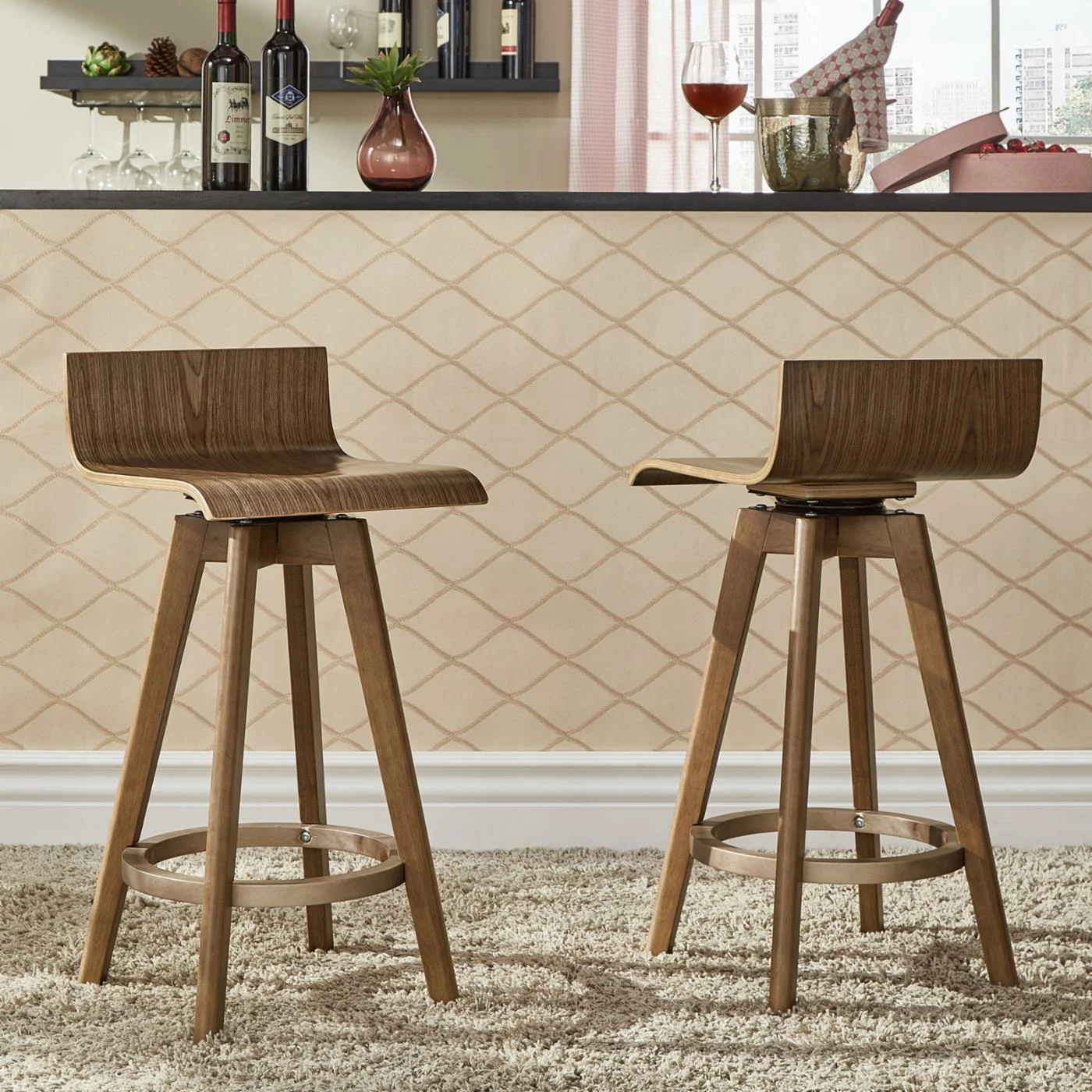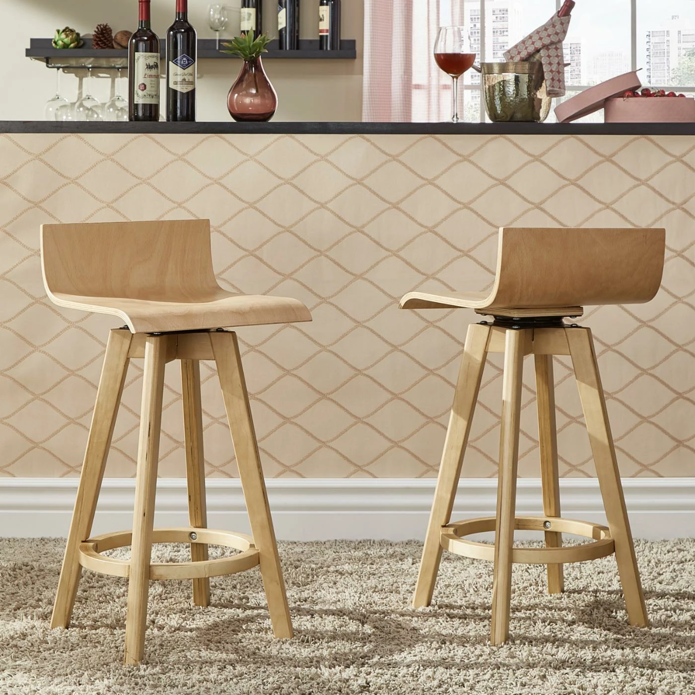 With their curved seats and low-profile backs, the Weston Home Aleksi 24 in. Swivel Counter Stool – Set of 2 are sure to bring modern style to your home. Constructed of solid beech wood, each stool is sturdy and durable. The smooth swivel function allows you to easily keep track of the conversation. A round stretcher adds strength to the piece and acts as a convenient footrest. Choose from available finishes to find the Weston Home Aleksi 24 in. Swivel Counter Stool – Set of 2 that works best for your home.