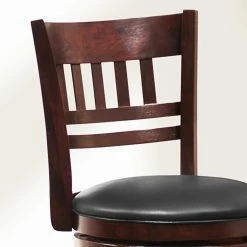 The countertop just might become your householdβs favorite hangout once you add the Edmond Fence-Back Swivel Counter Stool. Sure to have everyone lingering a bit longer, this rubberwood counter stool has a dark cherry finish that highlights the splayed legs and Mission-inspired fence design on the back. For an added dose of comfy, the seat is upholstered in black-bi-cast leather, and the swivel function puts the right spin on everything. Order one or order four, however many you need to have the perfect place to gather. Some simple assembly is required. Please note: This item is not intended for commercial use. Warranty applies to residential use only.
