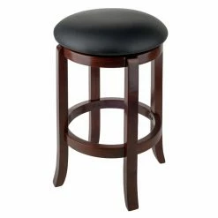 The Winsome Trading Walcott 24 in. Swivel Counter Stool is topped by a swivel seat that offers a full 360-degree turn radius. The seat of this counter stool is padded, and has black faux leather upholstery, giving it a sophisticated look. This counter stool’s wood frame promises support for up to 220 lbs. of weight, and gives it a stable build so you can enjoy it for years to come.