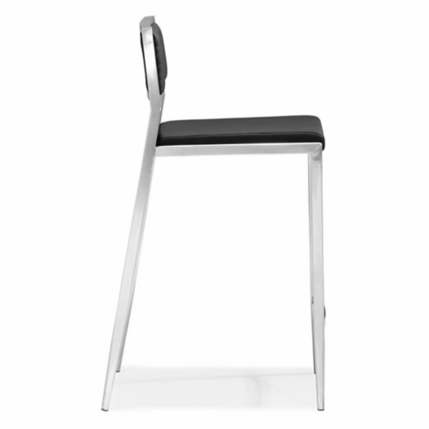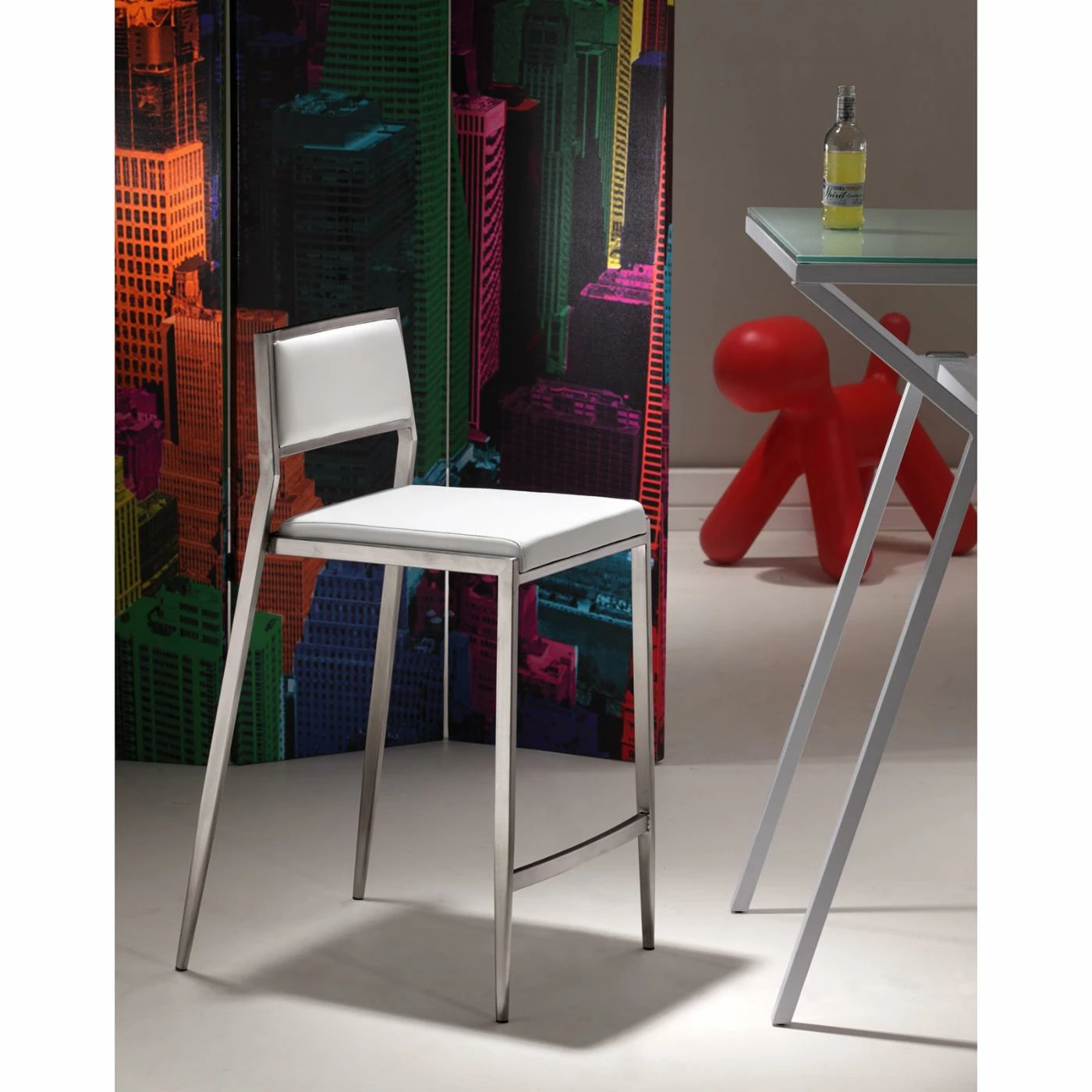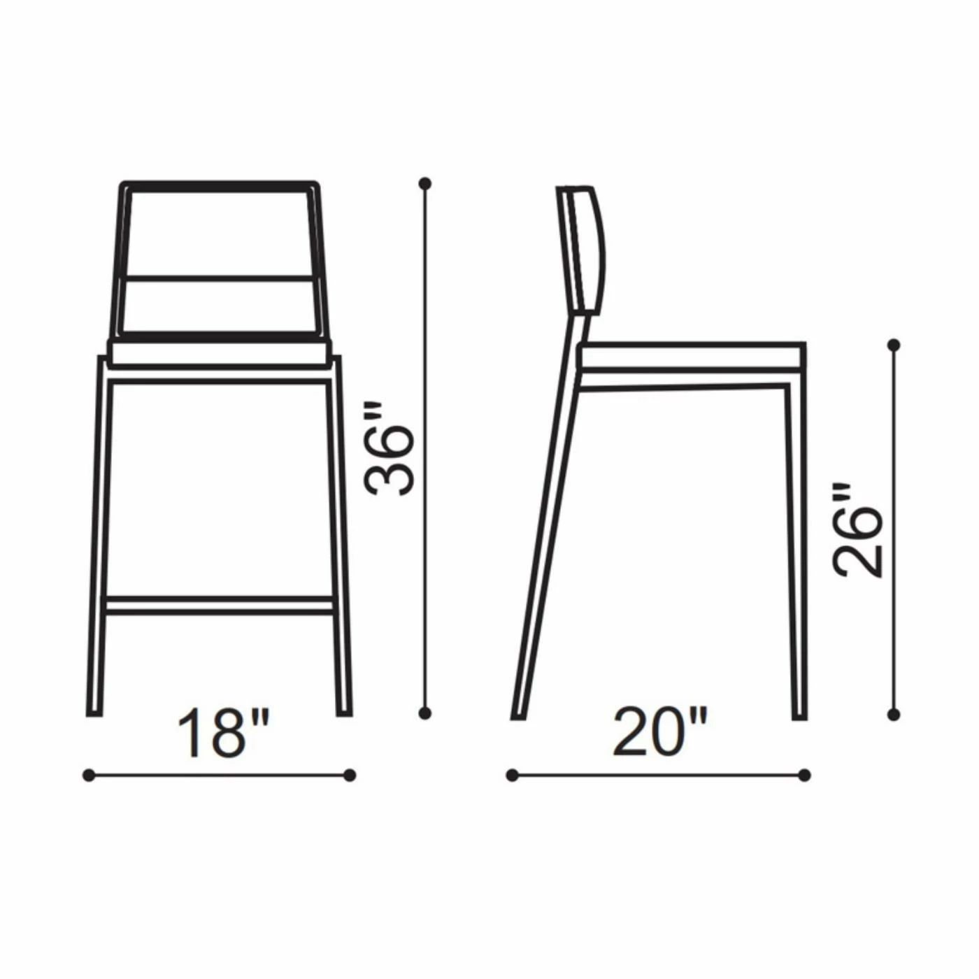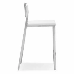The Zuo Modern Dolemite Counter Stool – Set of 2 lends a cool, modern look to your dining table or home bar. This bar stool has a streamlined frame of polished stainless steel with an integrated footrest set at the perfect height. It has a comfortable seat and tapered back available in black or white leatherette material. This bar stool is 36 inches tall with a slim 20-inch wide base – perfect in your modern home! Please note: This item is not intended for commercial use. Warranty applies to residential use only.