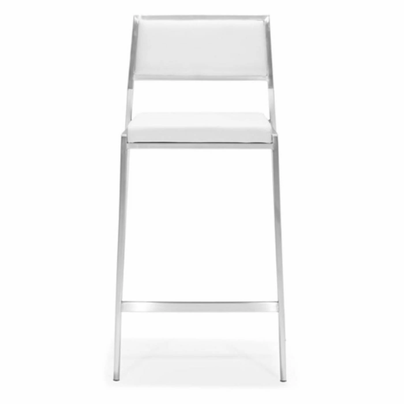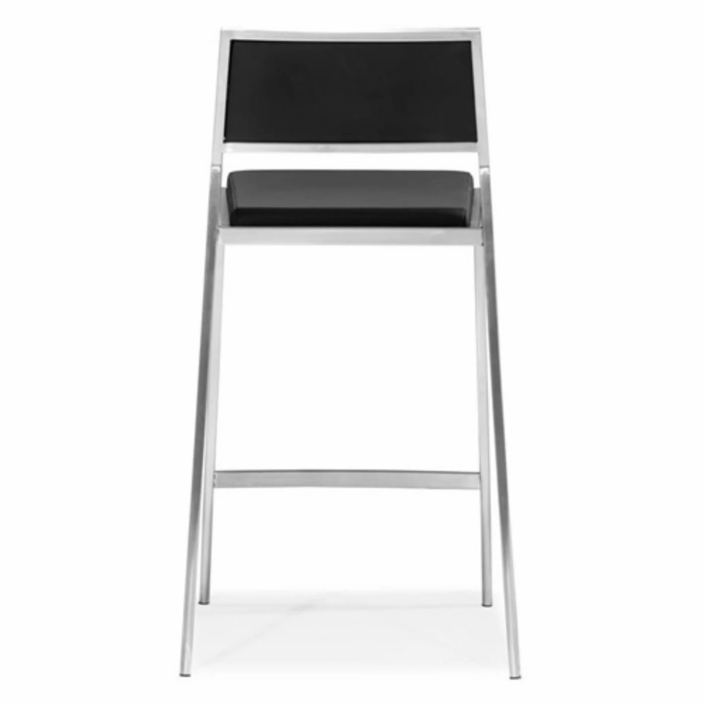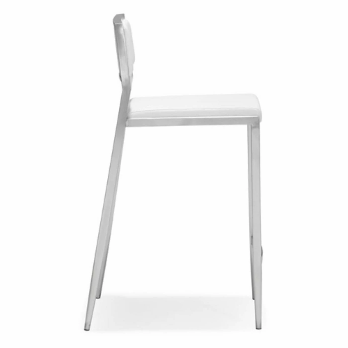 The Zuo Modern Dolemite Counter Stool – Set of 2 lends a cool, modern look to your dining table or home bar. This bar stool has a streamlined frame of polished stainless steel with an integrated footrest set at the perfect height. It has a comfortable seat and tapered back available in black or white leatherette material. This bar stool is 36 inches tall with a slim 20-inch wide base – perfect in your modern home! Please note: This item is not intended for commercial use. Warranty applies to residential use only.