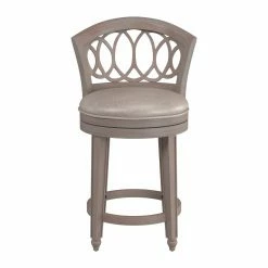 Add beauty and interest to your home with the gorgeous Hillsdale Furniture Adelyn Swivel Counter Stool. Crafted from wood and finished in a gold metallic silver, this stool features an interlocking ring design and is outfitted with a 360 degree swivel stool with a putty-finished seat covering. Some assembly required.