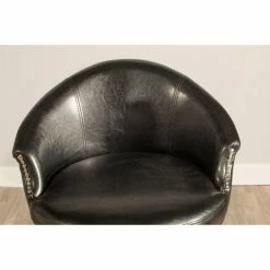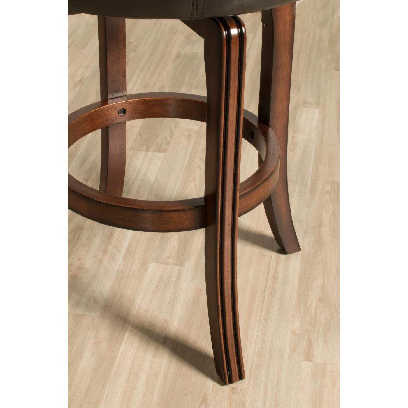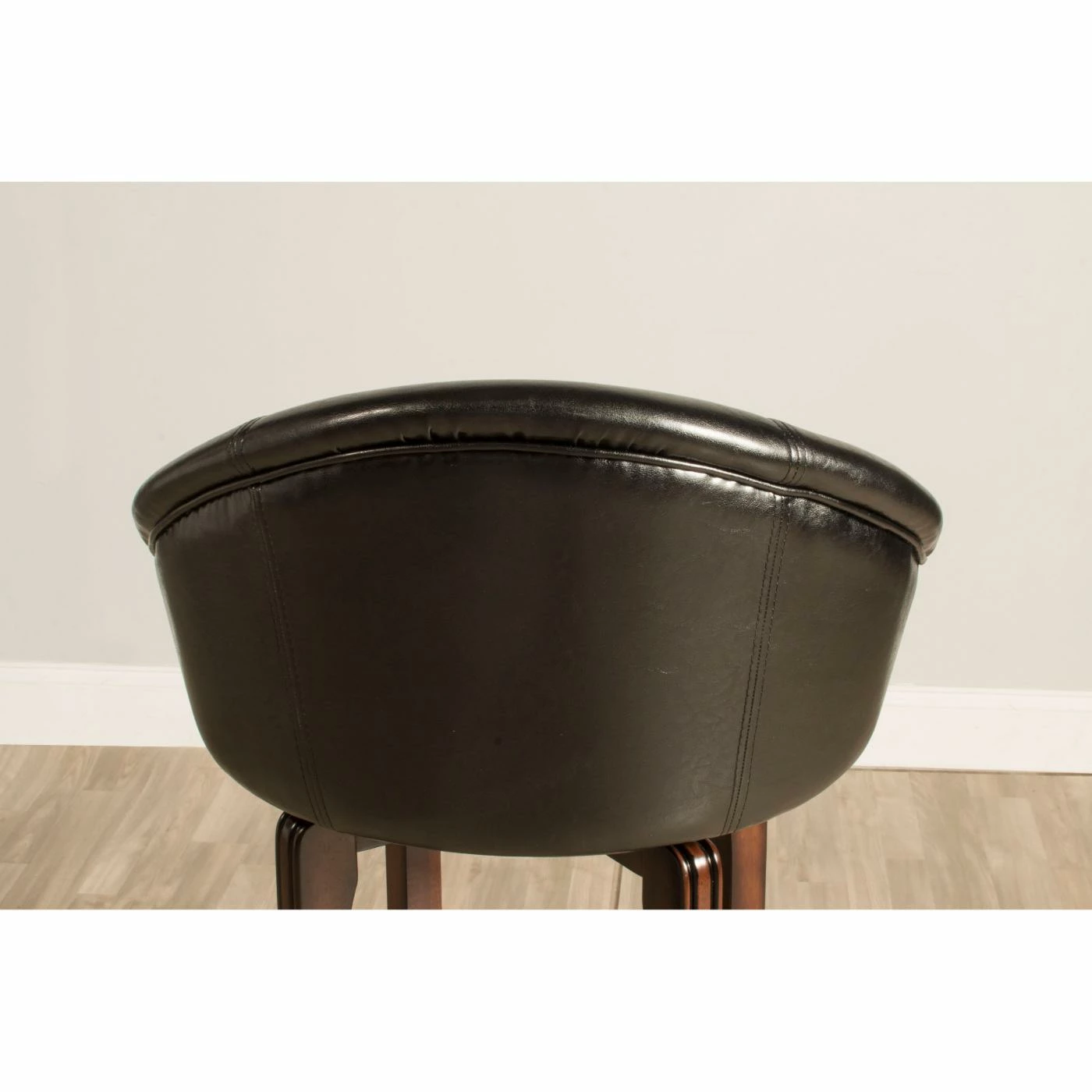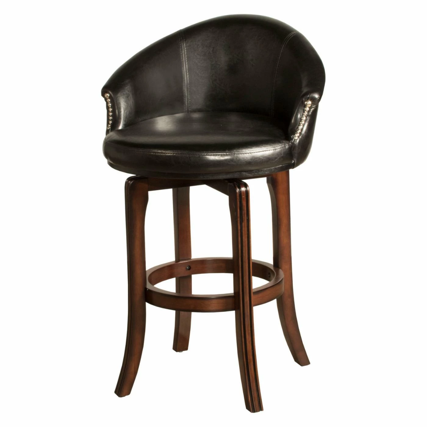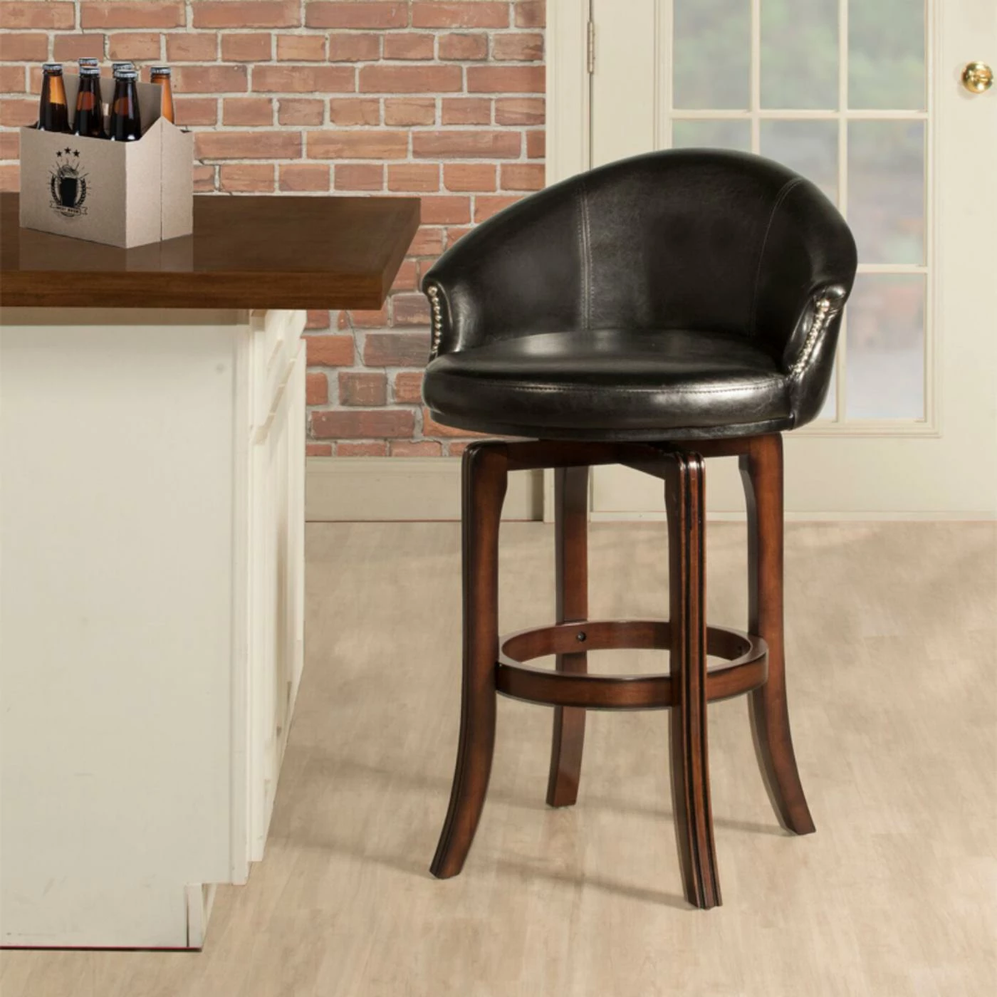 A beautiful accent and an ultra-comfortable seating choice, the Hillsdale Dartford Swivel Counter Stool is the perfect addition to your counter-height table. Built on a sturdy hardwood frame finished in dark cherry, this counter stool has black faux leather upholstery over a deep, padded seat. Tapered legs and a foot rail complete this stool’s lovely blend of traditional and contemporary style elements. Please note: This item is not intended for commercial use. Warranty applies to residential use only.