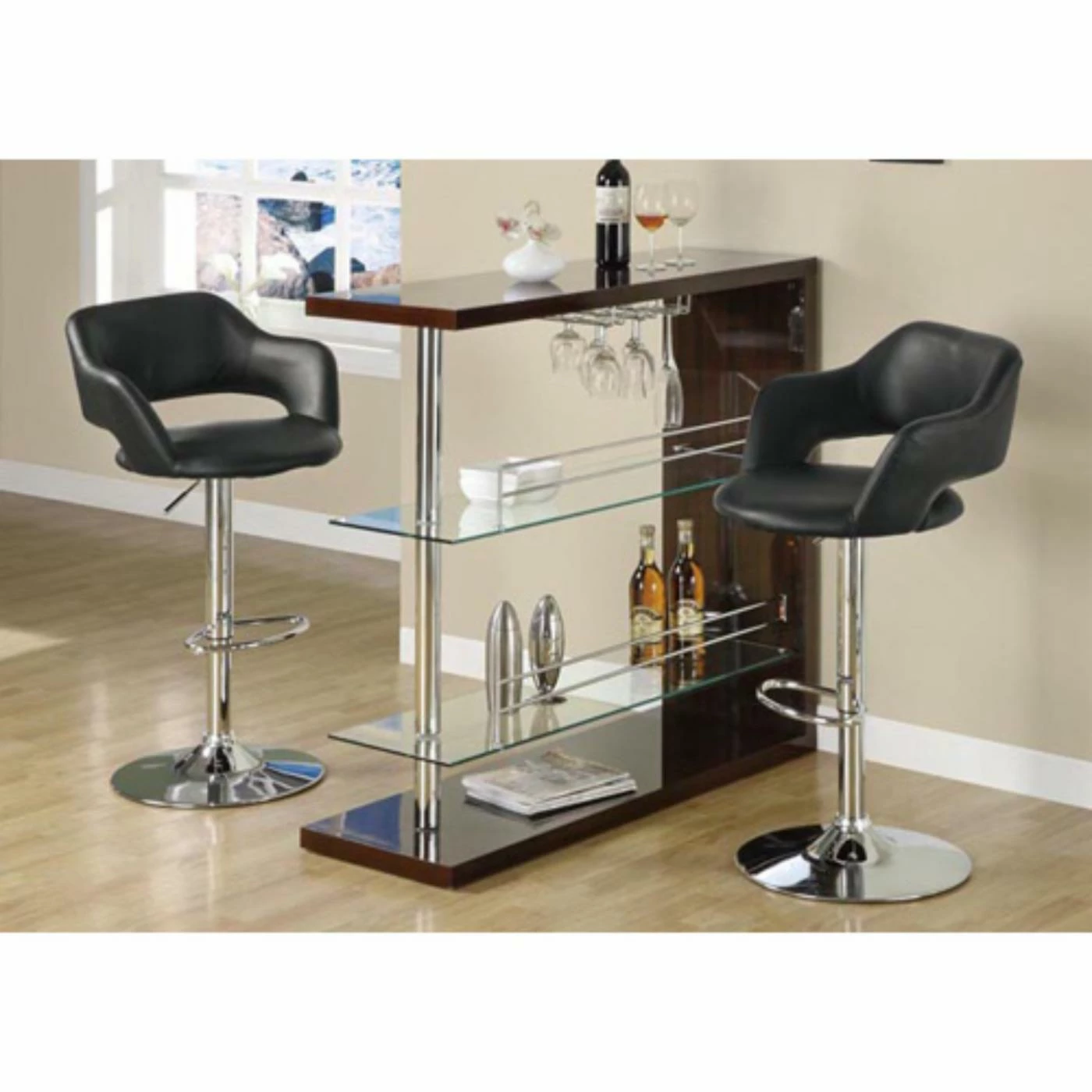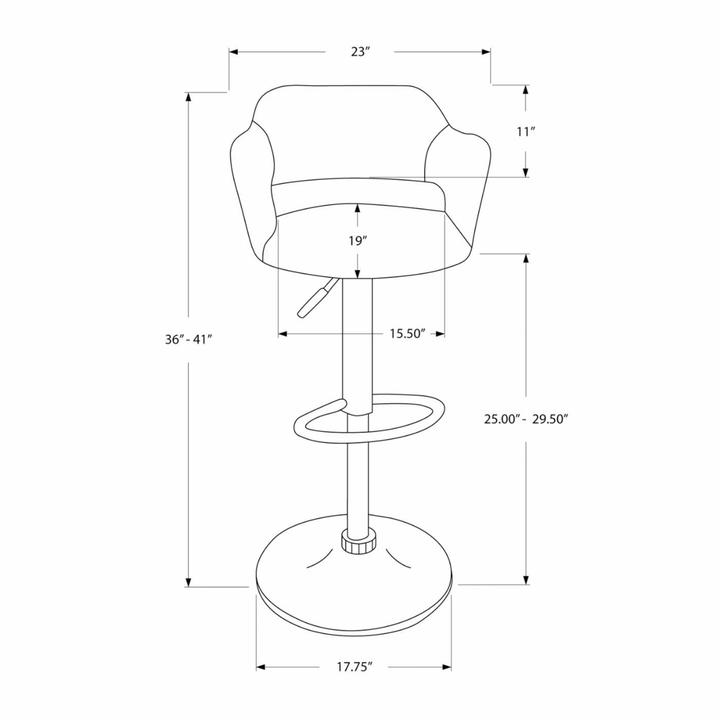 Bucket seating in a barstool? Count us in! The Monarch Specialties Genesee Adjustable Swivel Bar Stool, is an incredibleΒ stool with armrests, a back, and soft leatherette upholstery. Its style and comfort with a highly durable metal frame that’s built to last. Best of all, this chrome-coated stoolΒ is fully customizable in both their appearance andΒ height. You may choose between black or white upholstery and the pedestal base features a hydraulic lift that can raise and lower the seat however you like! Measures 22.8W x 23D x 43H inches. Some assembly is required. Please note: This item is not intended for commercial use. Warranty applies to residential use only.